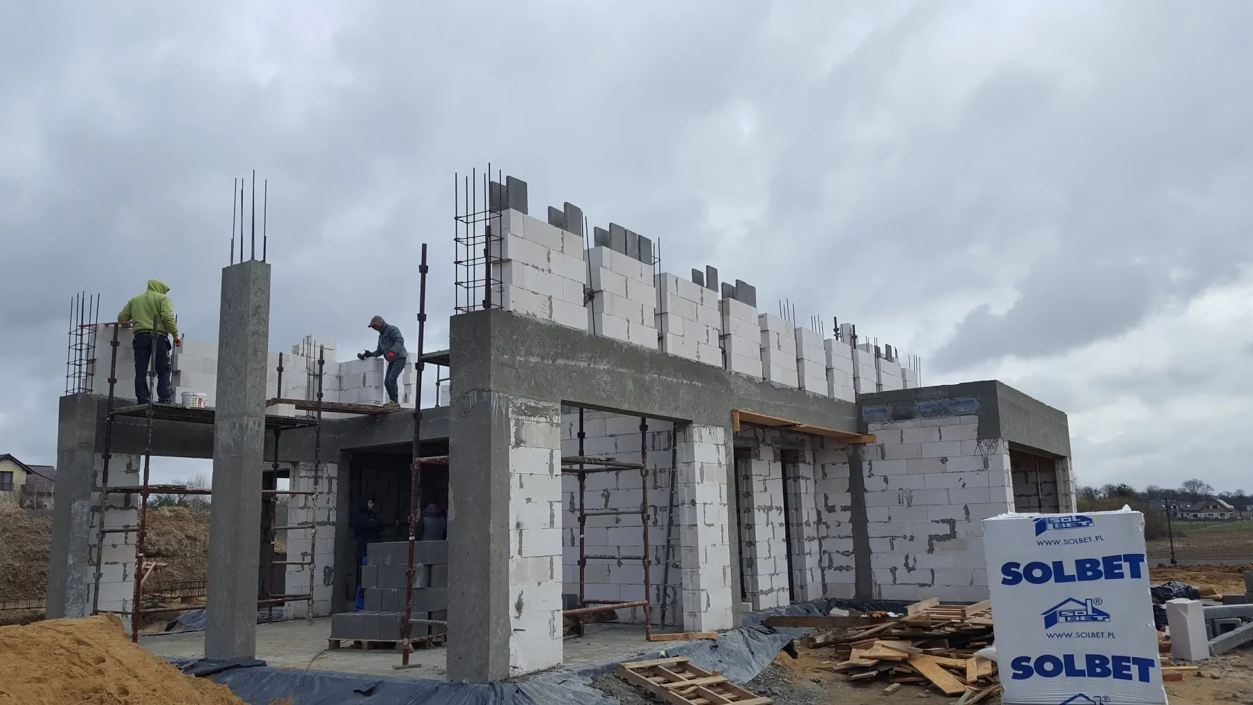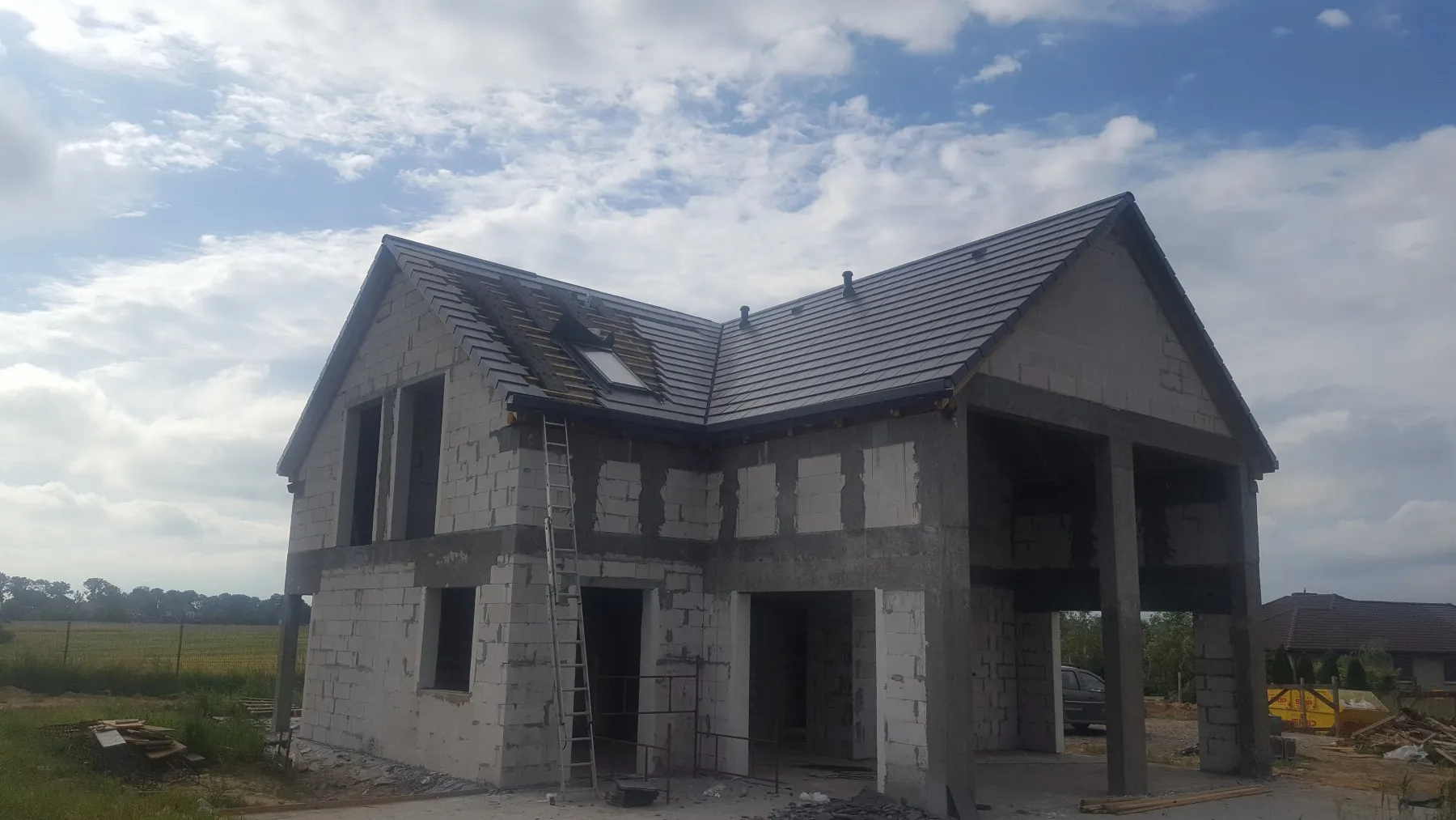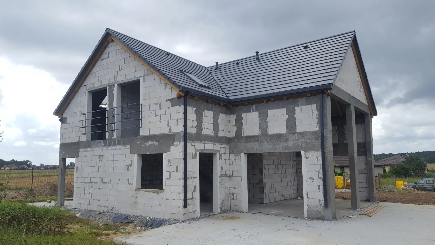 Casă cu o suprafață de aproape 150 m2 ridicată pe o placă de fundație armată. Pereții portanți și despărțitori au fost realizați din beton celular, cu grosimi corespunzătoare de 24 cm și 12 cm. Plafonul este de tip Teriva cu grinzi dense. Structura acoperișului a fost realizată conform proiectului de construcție din lemn impregnat de clasa C24. Acoperișul clădirii a fost acoperit cu țiglă betonată Braas Teviva de culoare grafit. De asemenea, a fost montată o trecere pentru sistemul fotovoltaic.