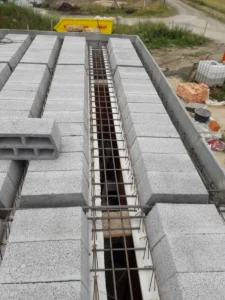 Casă cu o suprafață de 250 m2 ridicată pe o placă de fundație ranforsată și turnată cu beton C20/C25. Atât pereții portanți, cât și pereții despărțitori au fost realizați din blocuri Ytong cu grosimea de 24 cm, respectiv 12 cm. Structura din lemn a acoperișului a fost realizată folosind lemn de conifere impregnat. Acoperișul clădirii a fost acoperit cu țiglă ceramică Roben Piemont de culoare antracit.