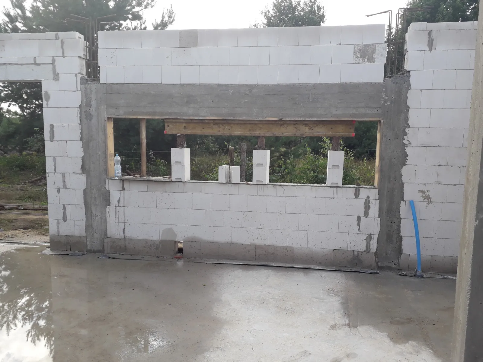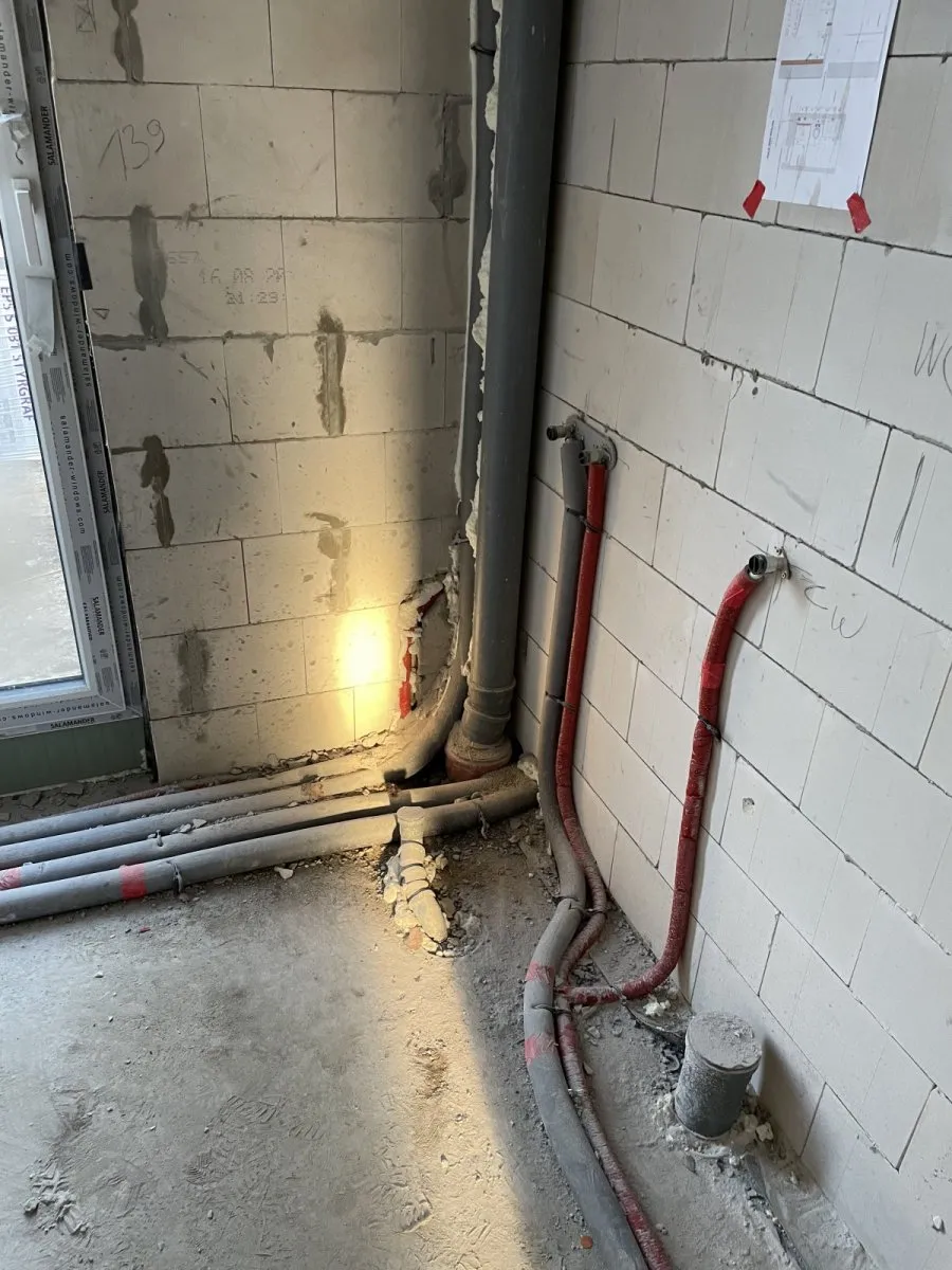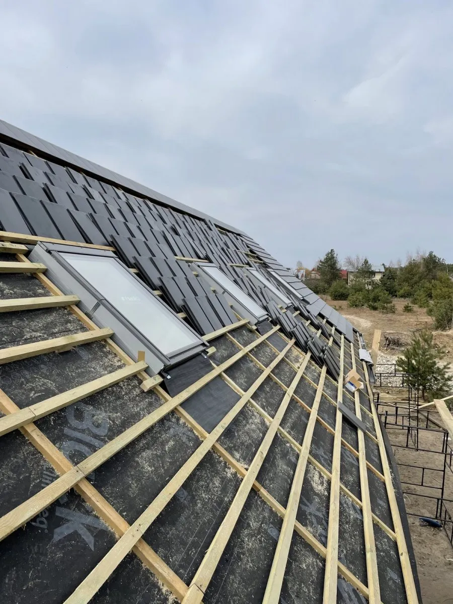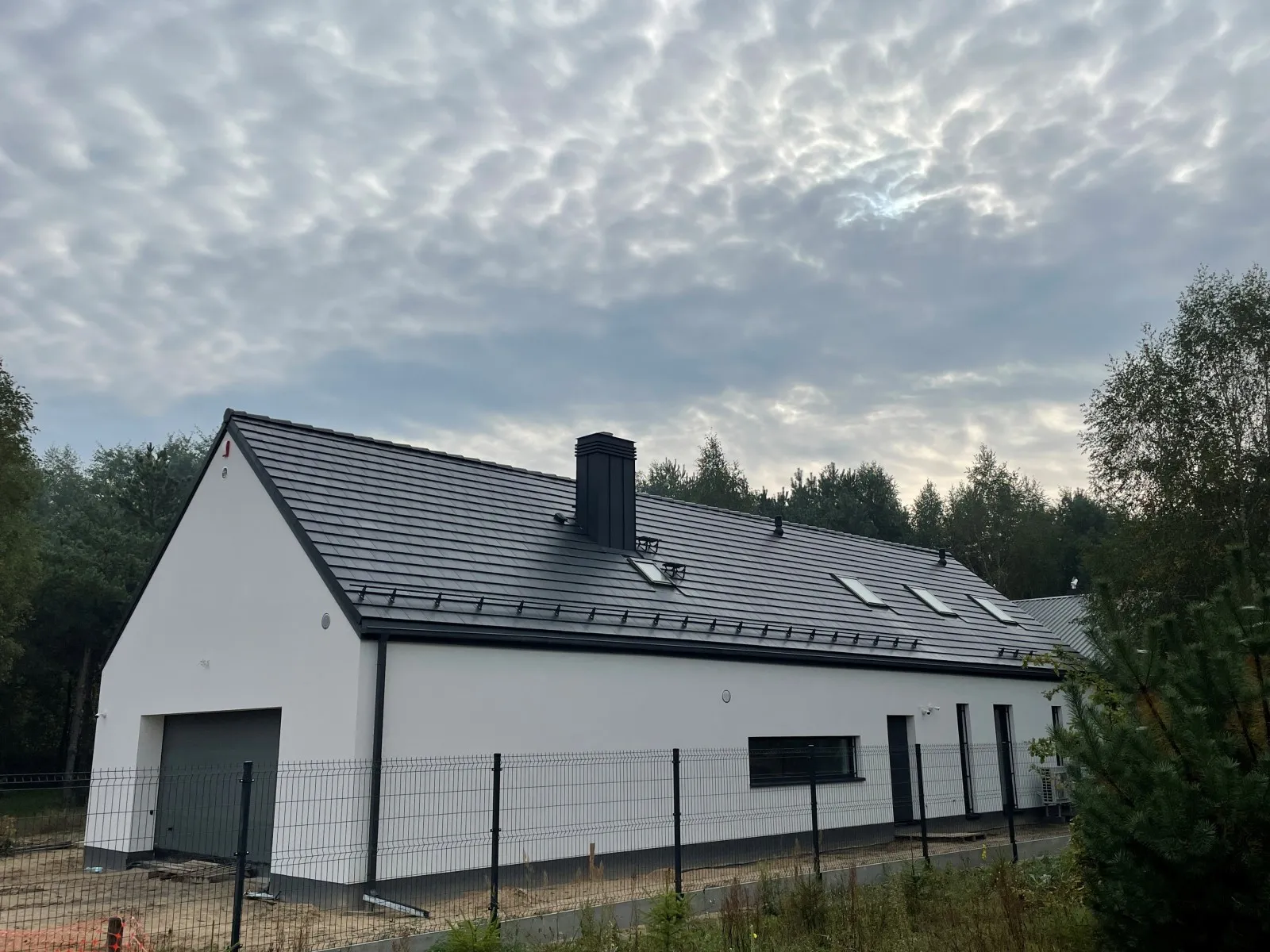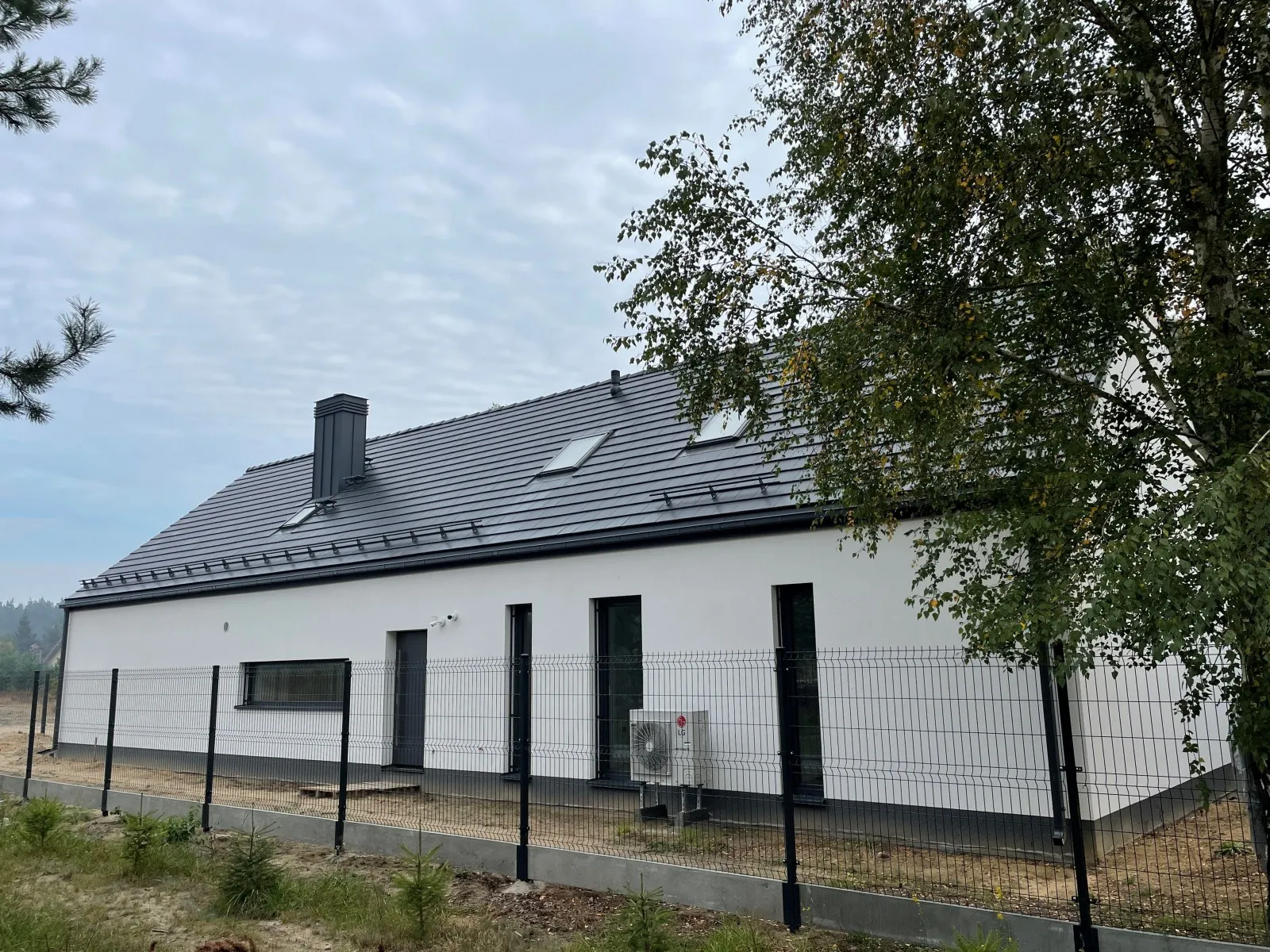 Casă cu o suprafață utilă de aproape 120 m2 ridicată pe o placă de fundament armată cu izolație termoeficientă din polistiren extrudat XPS 300 de 20 cm. Atât pereții portanți, cât și pereții despărțitori au fost realizați din blocuri silicat, cu mortar subțire de clasă M10. Structura acoperișului a fost realizată ca o construcție tradițională din lemn cu o plafon monolitic, acoperit cu țiglă de ciment Brass Teviva de culoare antracit. A fost instalat și tubul pentru alimentarea instalației fotovoltaice (PV).