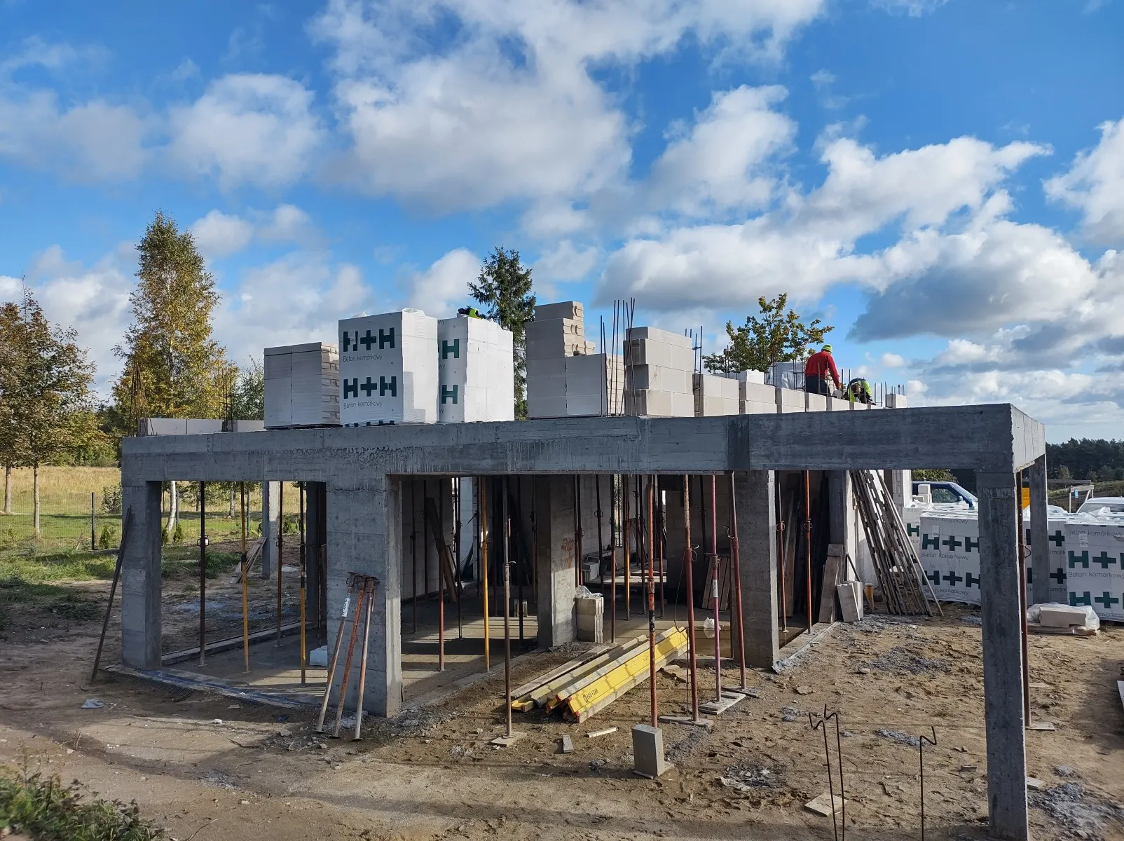 Casă cu o suprafață de 199 m2 construită pe fundații tradiționale, adică pe cureaua de armare și pereții de fundație. Pereții purtători și despărțitori au fost realizați din beton celular cu grosimi de 24 cm și respectiv 12 cm. Structura acoperișului a fost realizată în mod tradițional conform proiectului. Acoperișul clădirii a fost acoperit cu țiglă ceramică plată de culoare antracit angobat.