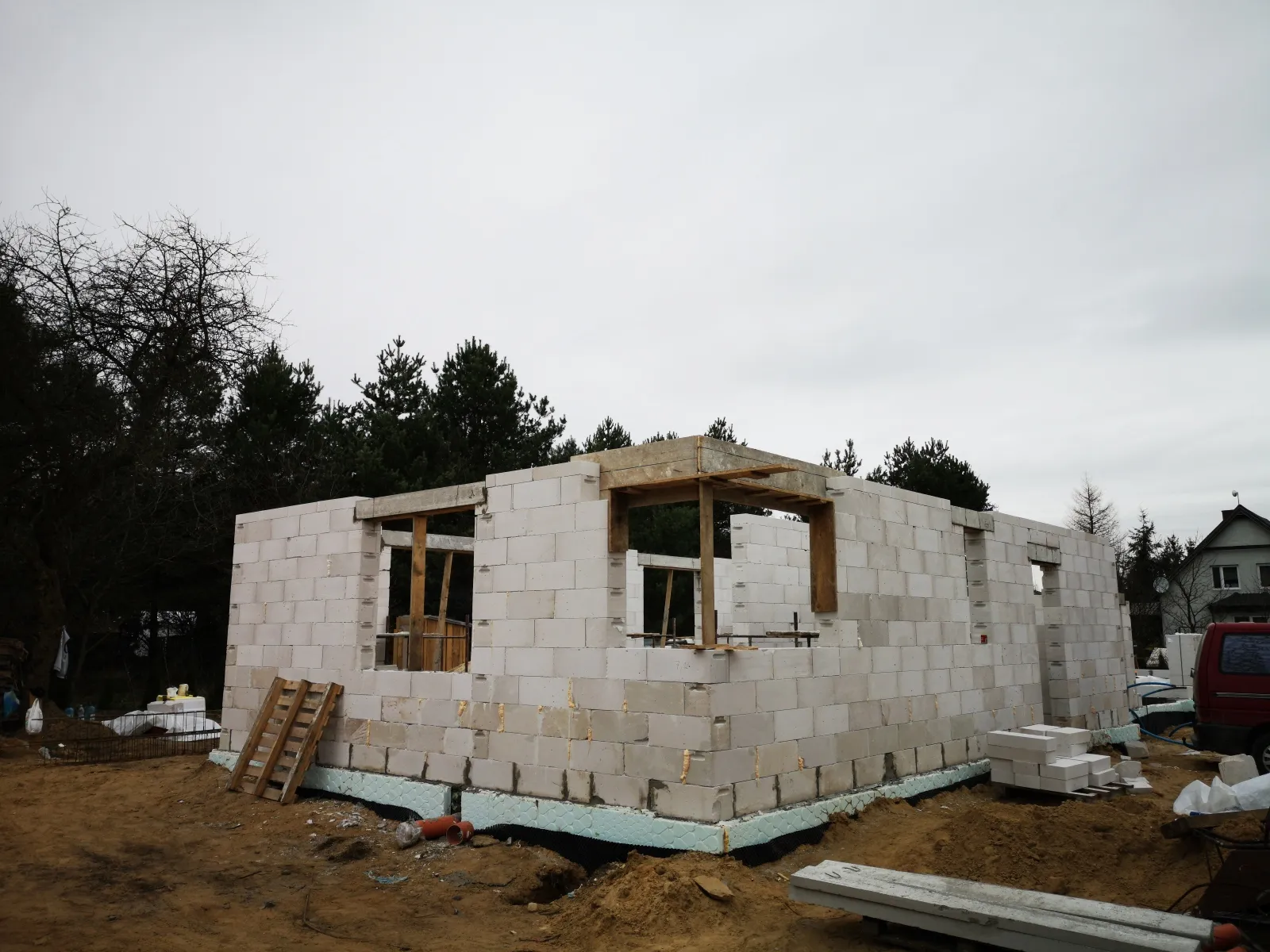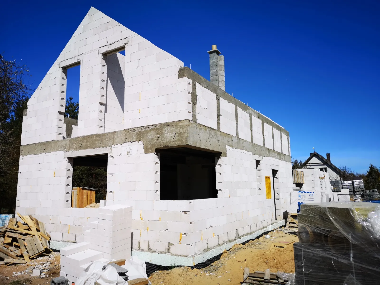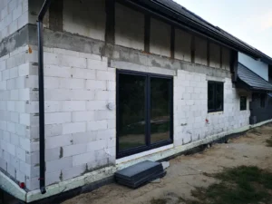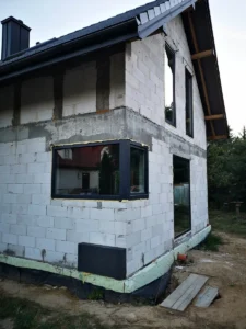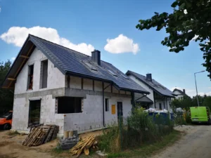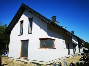 Casa duplex construită pe fundații tradiționale, adică cu grinzi și ziduri de fundație armate. Pereții exteriori ai parterului și etajului clădirii au fost construți din beton celular. A fost utilizat plafon teriva. Structura acoperișului a fost realizată în mod tradițional din lemn de conifere impregnat conform proiectului. De afară, a fost acoperit cu țiglă betonată plată. A fost montată tâmplăria pentru ferestre și uși.