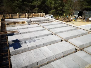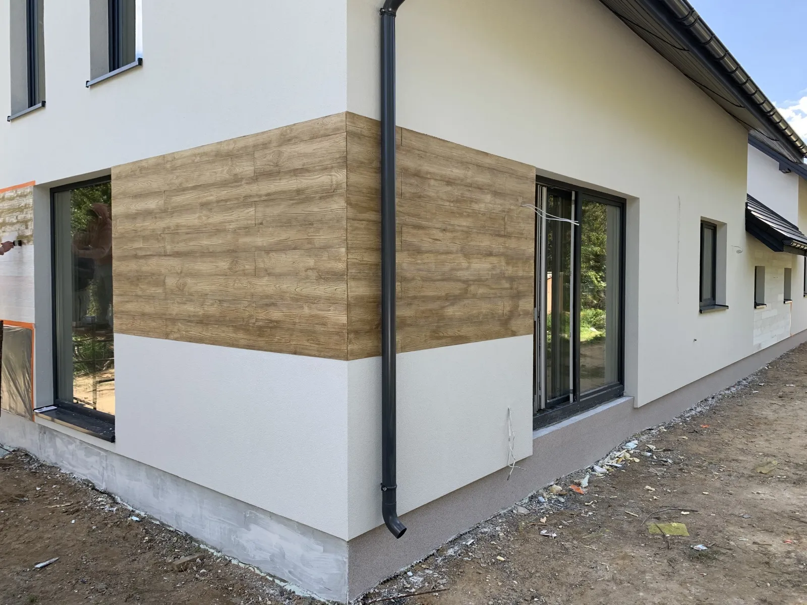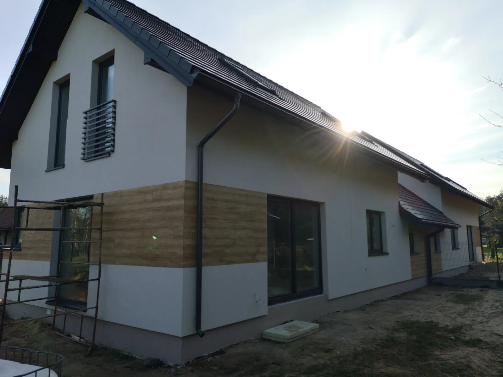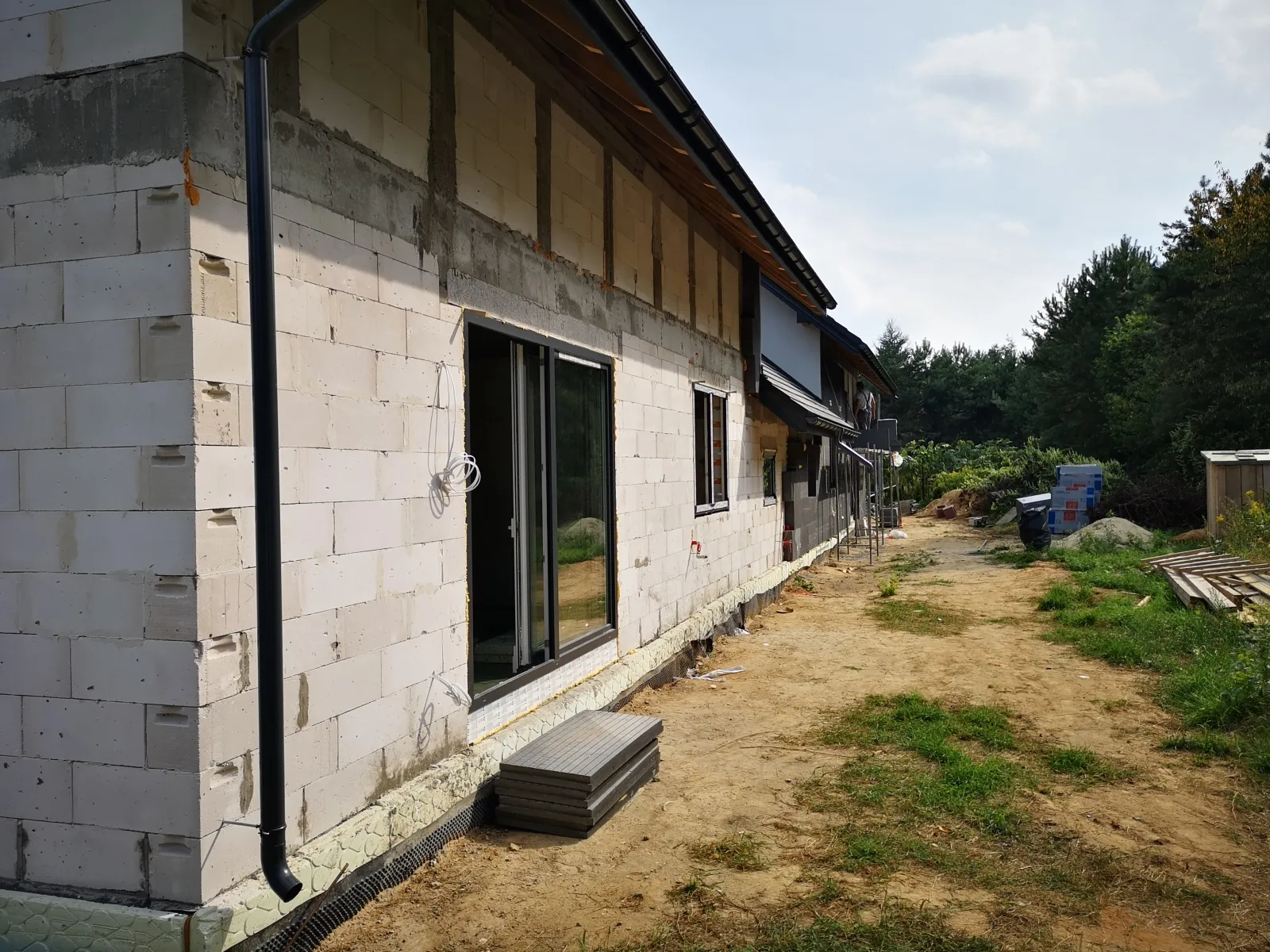 Casa duplex construită pe fundații tradiționale, adică cu grinzi și ziduri de fundație armate. Pereții exteriori ai parterului și etajului clădirii au fost construți din beton celular. A fost utilizat plafon teriva. Structura acoperișului a fost realizată în mod tradițional din lemn de conifere impregnat conform proiectului. De afară, a fost acoperit cu țiglă betonată plată. A fost montată tâmplăria pentru ferestre și uși.