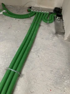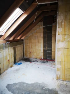 În clădire au fost executate instalația electrică, teletehnică, instalația de apă-canalizare, instalația de recuperare a aerului, instalația completă de încălzire cu gaz și încălzire prin pardoseală. Acoperișul a fost izolat cu spumă poliuretanică rigidă (PUR).