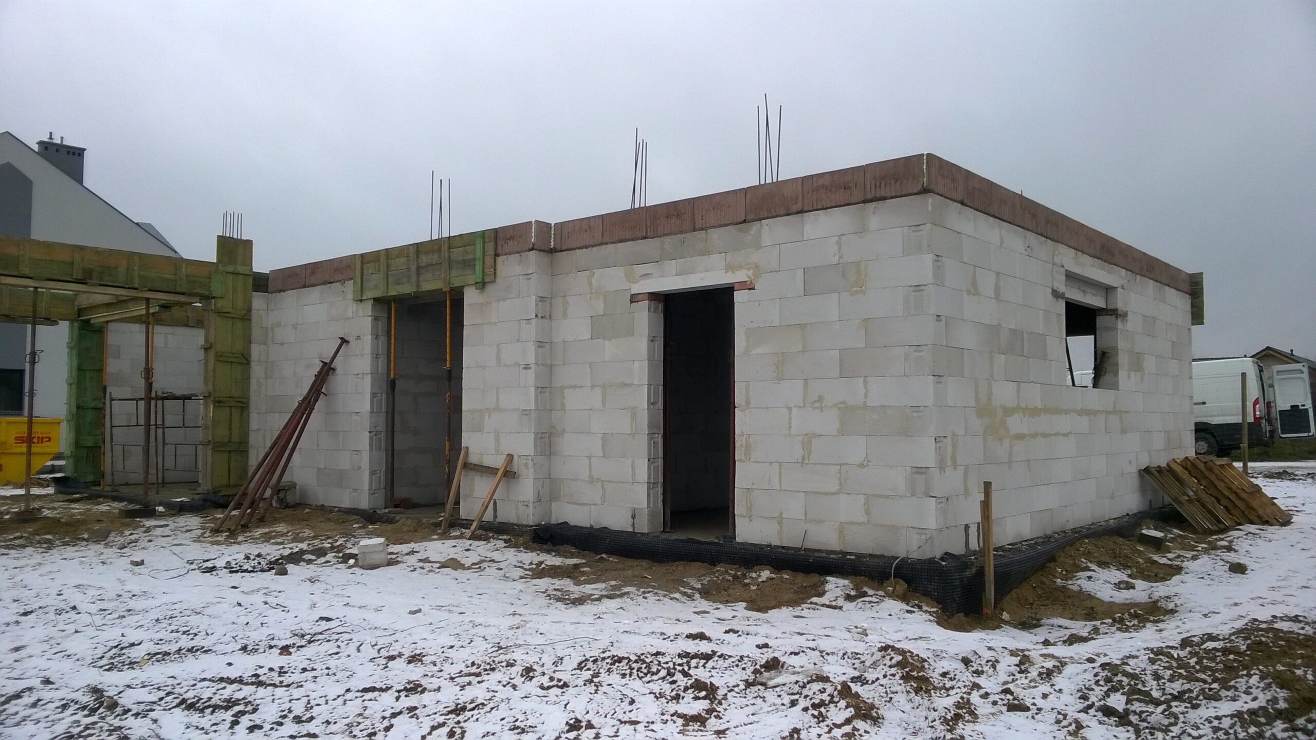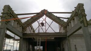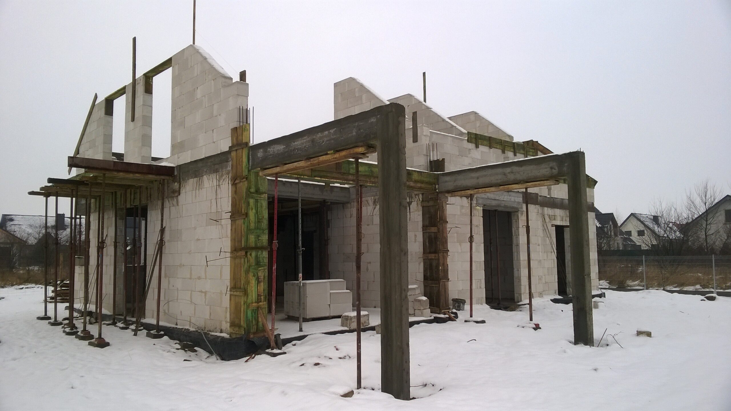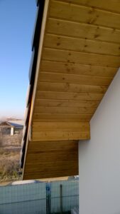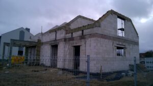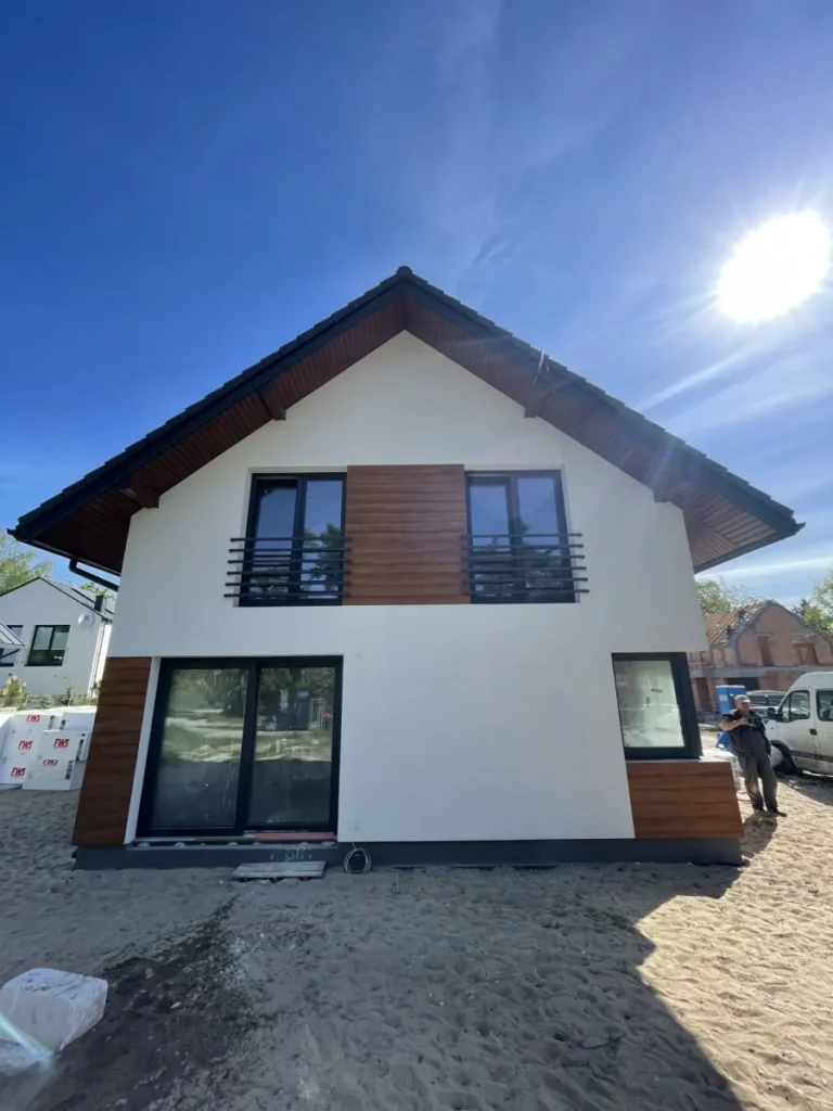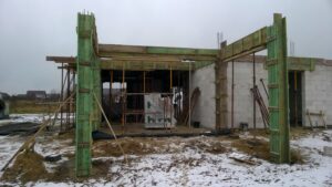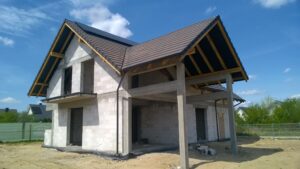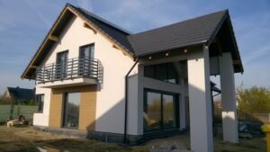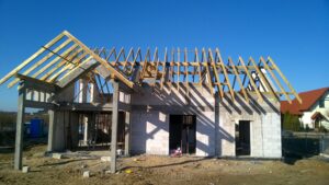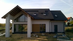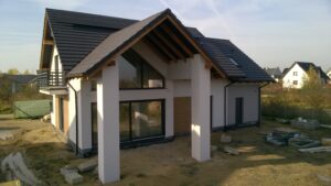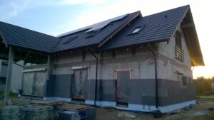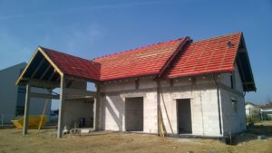 Casa cu o suprafață de 171 m2 ridicată pe fundații tradiționale, adică pe benzi armate și ziduri de fundație. Pereții de susținere și cei despărțitori au fost realizați din beton celular cu o grosime de 24 cm, respectiv 12 cm. Structura acoperișului a fost realizată tradițional conform proiectului. Acoperișul clădirii este acoperit cu țiglă ceramică plată. Planșeul teriva 24.