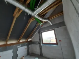 În cadrul montajului termic al tâmplăriei, a fost instalat un sistem de ferestre eficiente energetic cu profile cu 6 camere și adâncimea de 82 mm. Ferestrele sunt echipate cu jaluzele încastrate tip RZ cu acționare electrică. În plus, au fost montate pervazuri calde din XPS și elemente de etanșare sub ferestre pentru a asigura parametri maximi de montaj a ferestrelor. În clădire au fost realizate instalațiile electrice, tehnice, apă-canal, instalația de recuperare a căldurii, instalația completă de încălzire electrică cu senzori și termostate, precum și încălzirea apei menajere în boilere electrice Ariston Nous Evo Split 200.
