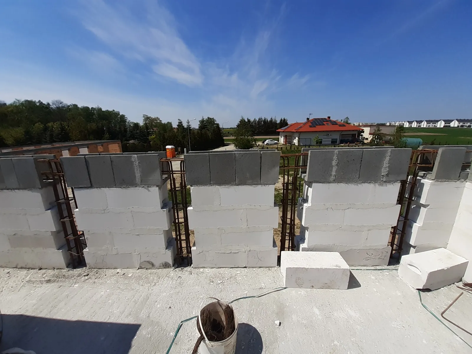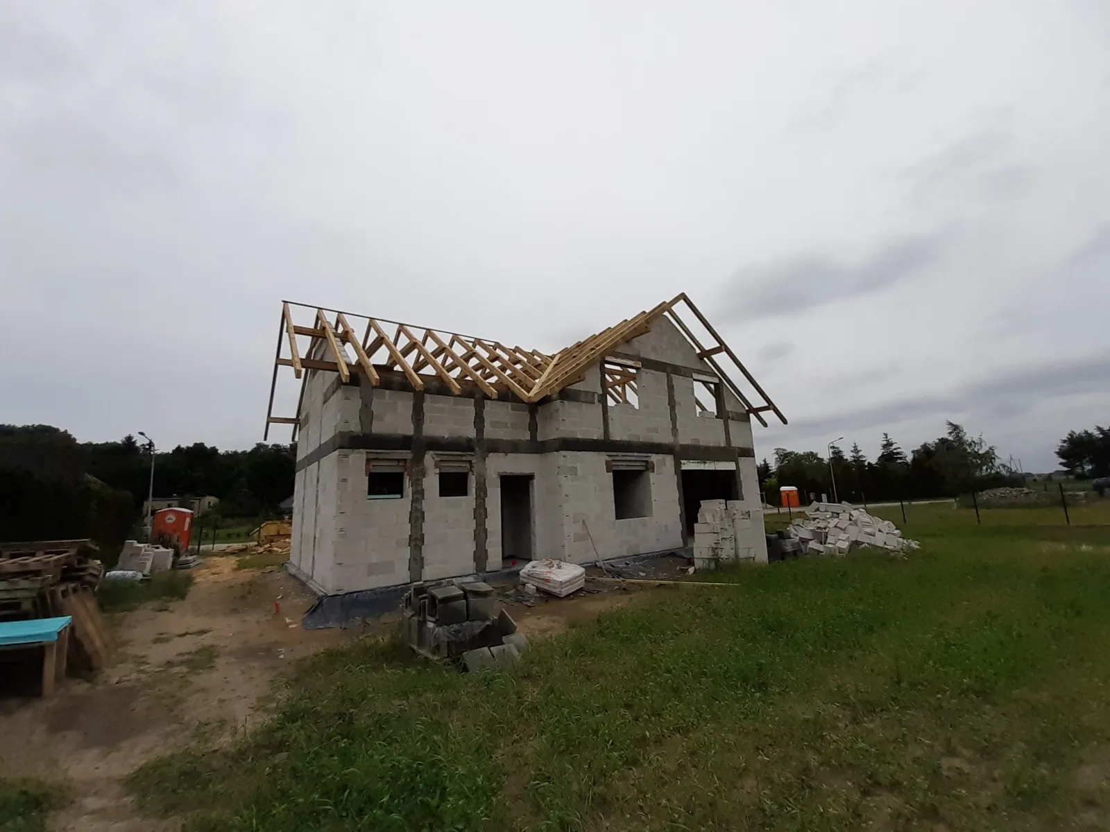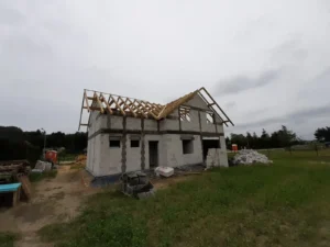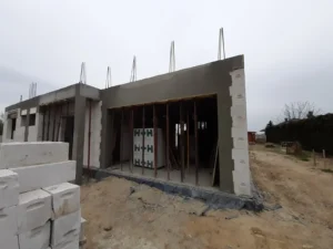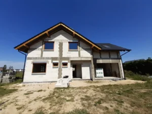 Casa cu o suprafață de 167 m2 construită pe o placă de fundație armată. Atât pereții portanți, cât și cei despărțitori au fost realizați din blocuri de beton celular pe un adeziv cu strat subțire clasa M5. Plafonul este de tip teriva, scările spre etaj sunt din beton armat monolitic. Grinda acoperișului a fost realizată conform proiectului, folosind lemn de conifere impregnat clasa C24. Acoperișul clădirii este acoperit cu țiglă Braas Rubin 9V de culoare antracit.
