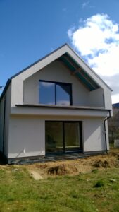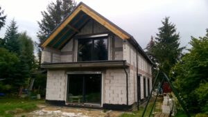 Aici a fost situată o casă cu o suprafață de 140m2 ridicată pe fundații tradiționale, adică pervazuri armate și ziduri de fundație. Pereții de susținere și cei despărțitori au fost realizați din beton celular cu o grosime de 24 cm respectiv 12 cm. Structura acoperișului a fost realizată în mod tradițional conform proiectului. Acoperișul clădirii a fost acoperit cu țiglă betonată plată.
