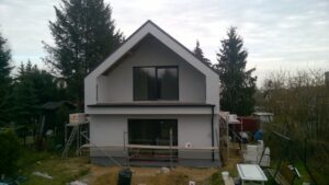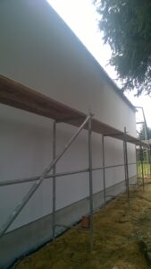 Izolația podului clădirii a fost realizată cu spumă PUR cu grosimea de 25 cm, iar pereții exteriori – cu polistiren grafitat cu grosimea de 20 cm. Pentru finisarea fațadei clădirii s-a folosit tencuială siliconică deschisă la culoare.