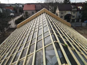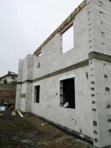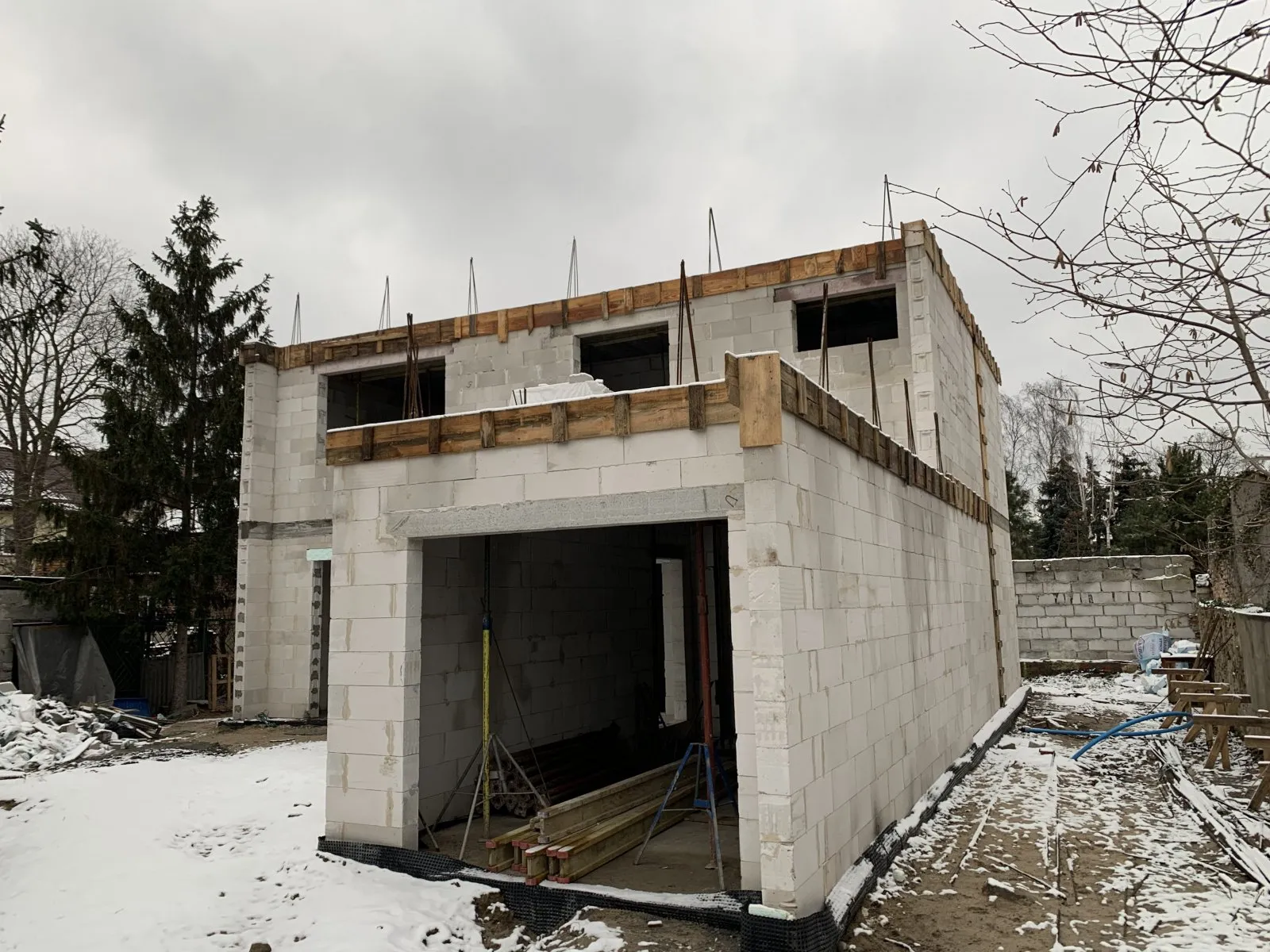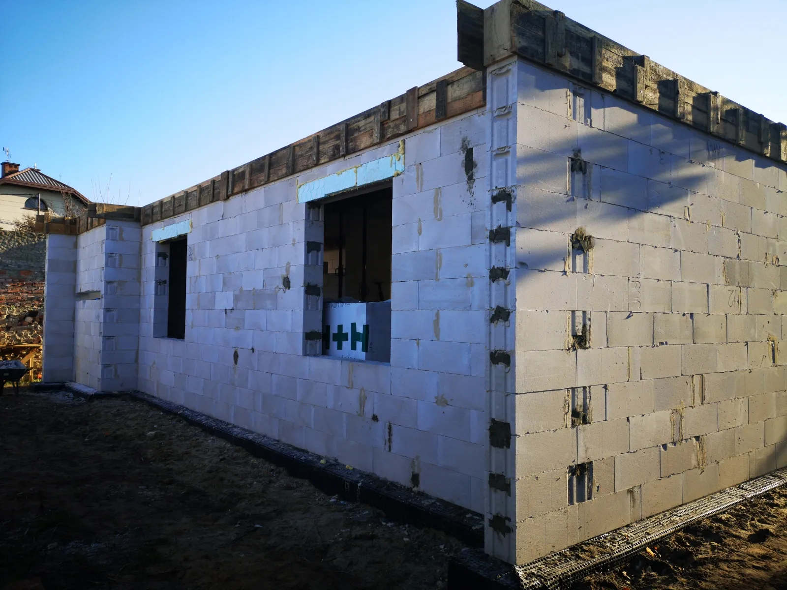 Casă cu o suprafață de 142 m2 construită pe fundații tradiționale, adică pe grinzi armate și cu pereți de fundație izolați. De asemenea, a fost realizată hidroizolația verticală a pereților de fundație. Pereții de susținere și cei despărțitori au fost realizați din beton celular, în timp ce structura acoperișului a fost realizată în mod tradițional, din lemn de conifere impregnat. Acoperișul clădirii a fost acoperit cu tablă tip țiglă Budmat Sara 350.