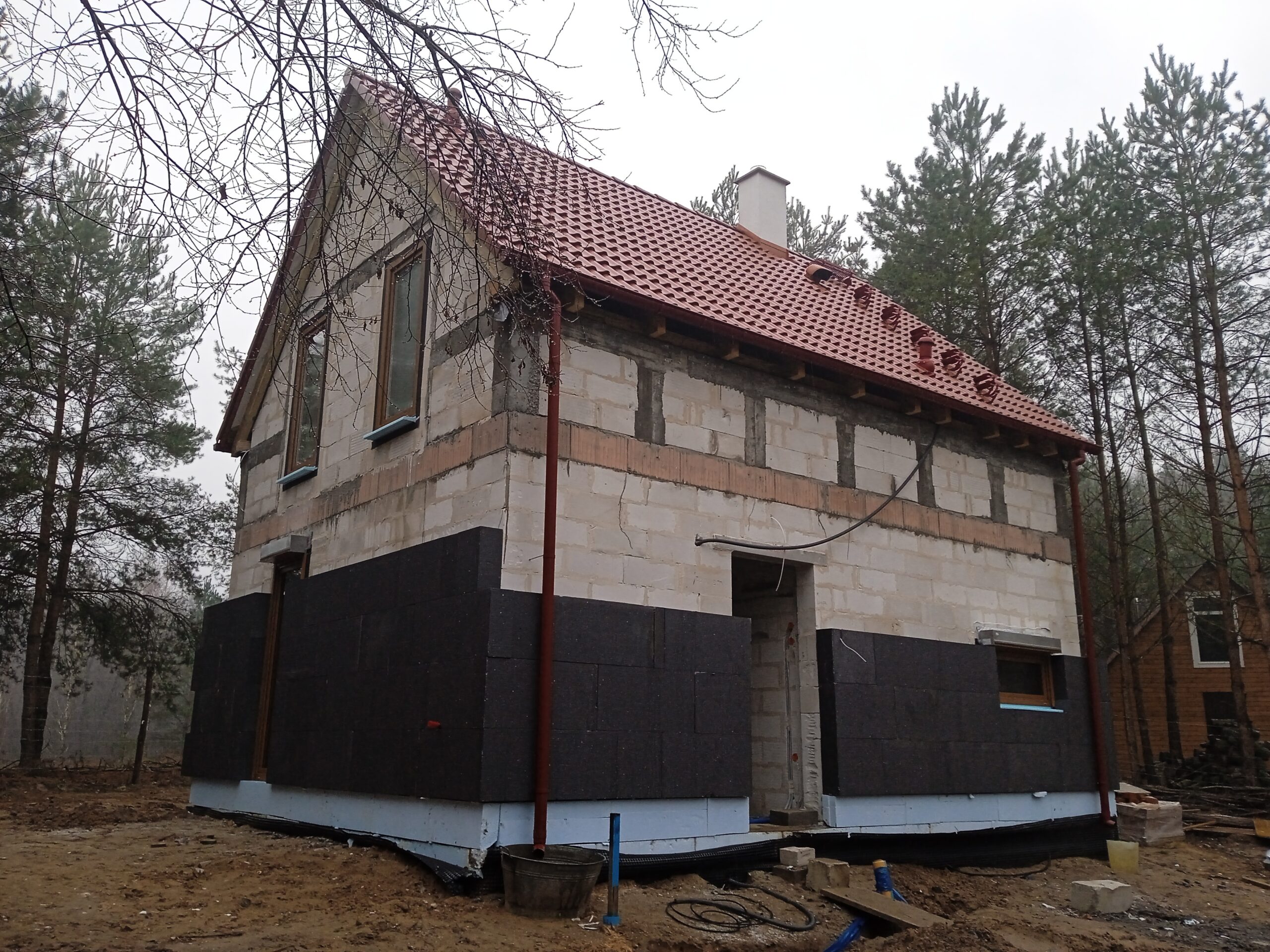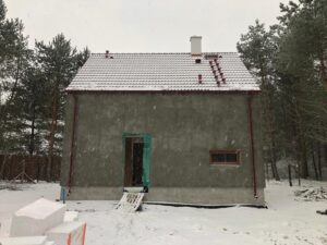 Izolația acoperișului clădirii a fost realizată cu spumă PUR cu grosimea de 25 cm, iar izolația pereților exteriori – cu polistiren grafit cu grosimea de 20 cm. Pentru finisarea fațadei clădirii s-a folosit tencuială siliconică albă.
