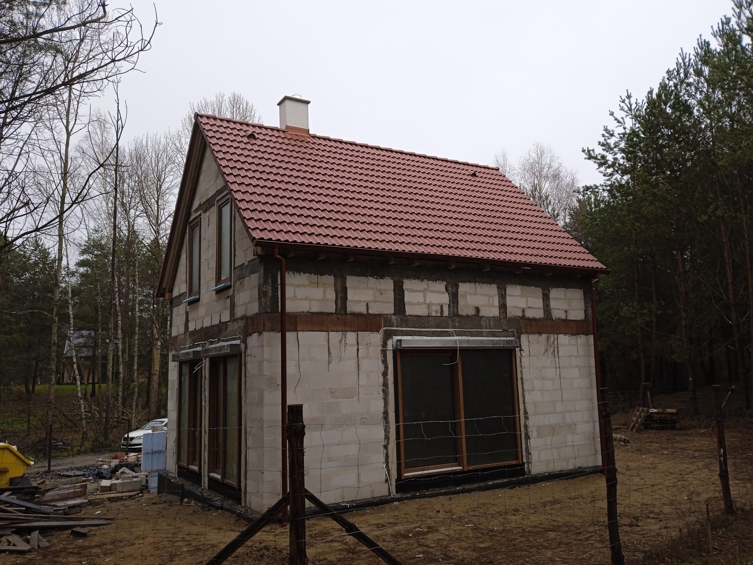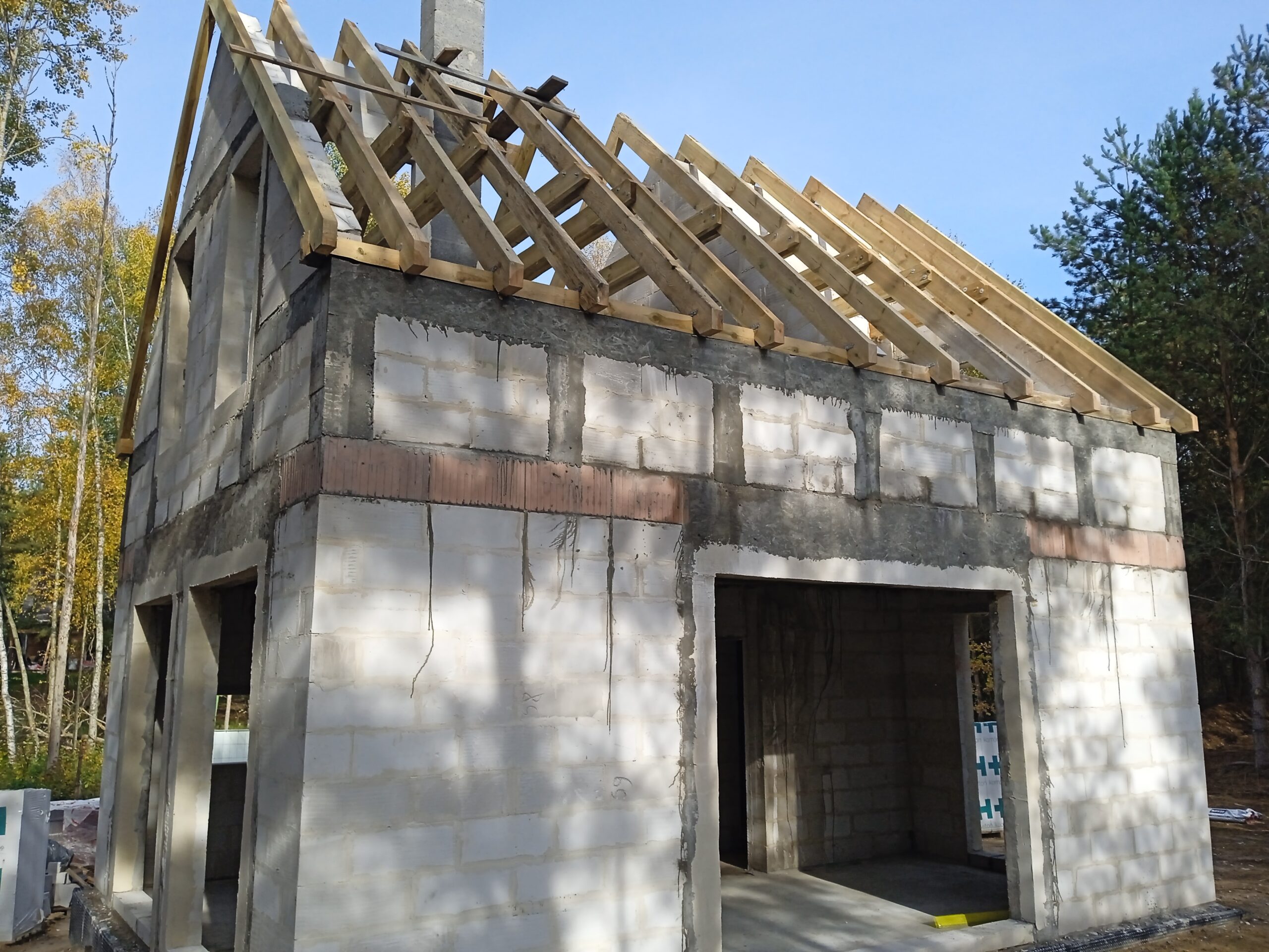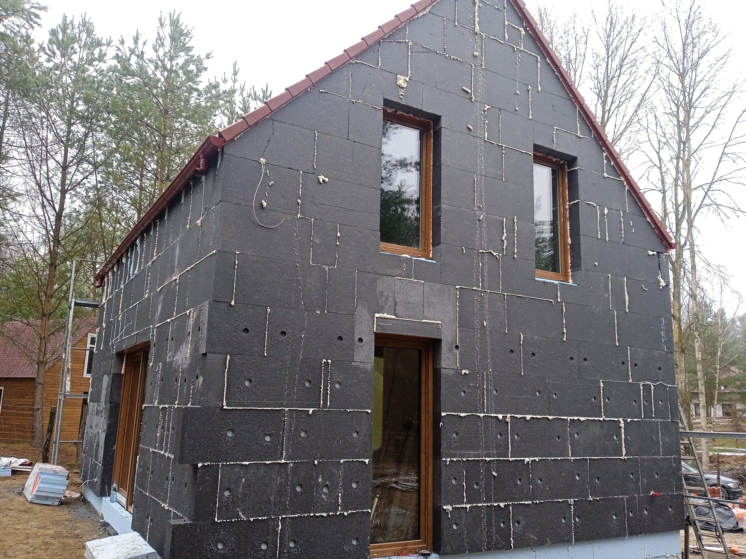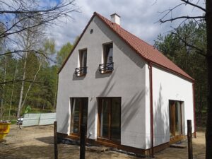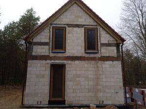 Casa cu o suprafață de 76 m2 ridicată pe fundații tradiționale, adică pe benzi de fundare armate și ziduri de fundație. Zidurile de rezistență și cele despărțitoare au fost realizate din beton celular cu grosimea de 24 cm și respectiv 12 cm. Plafonul este unul cu grinzi dense tip Teriva. Structura acoperișului a fost realizată în mod tradițional conform proiectului. Acoperișul a fost acoperit cu țiglă betonată plată de culoare grafit.