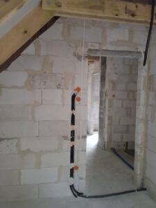 În cadrul montajului termic al tâmplăriei ferestrelor a fost instalat un sistem de ferestre cu trei foi de sticlă, eficiente energetic, cu profiluri Bluevolution cu 6 camere și adâncimea de 82 mm, precum și pervazuri termoizolante. În clădire au fost realizate instalații electrice, tehnice de telecomunicații, sanitare, o instalație completă de încălzire electrică împreună cu senzori și termostate, precum și instalația de recuperare a căldurii. De asemenea, a fost montat tub protetor pentru panouri fotovoltaice și instalația de distribuție a aerului cald de la șemineu către camerele din pod.