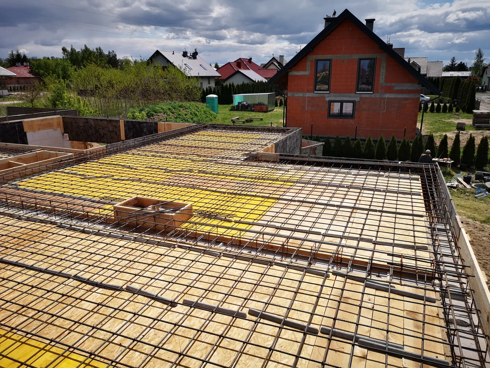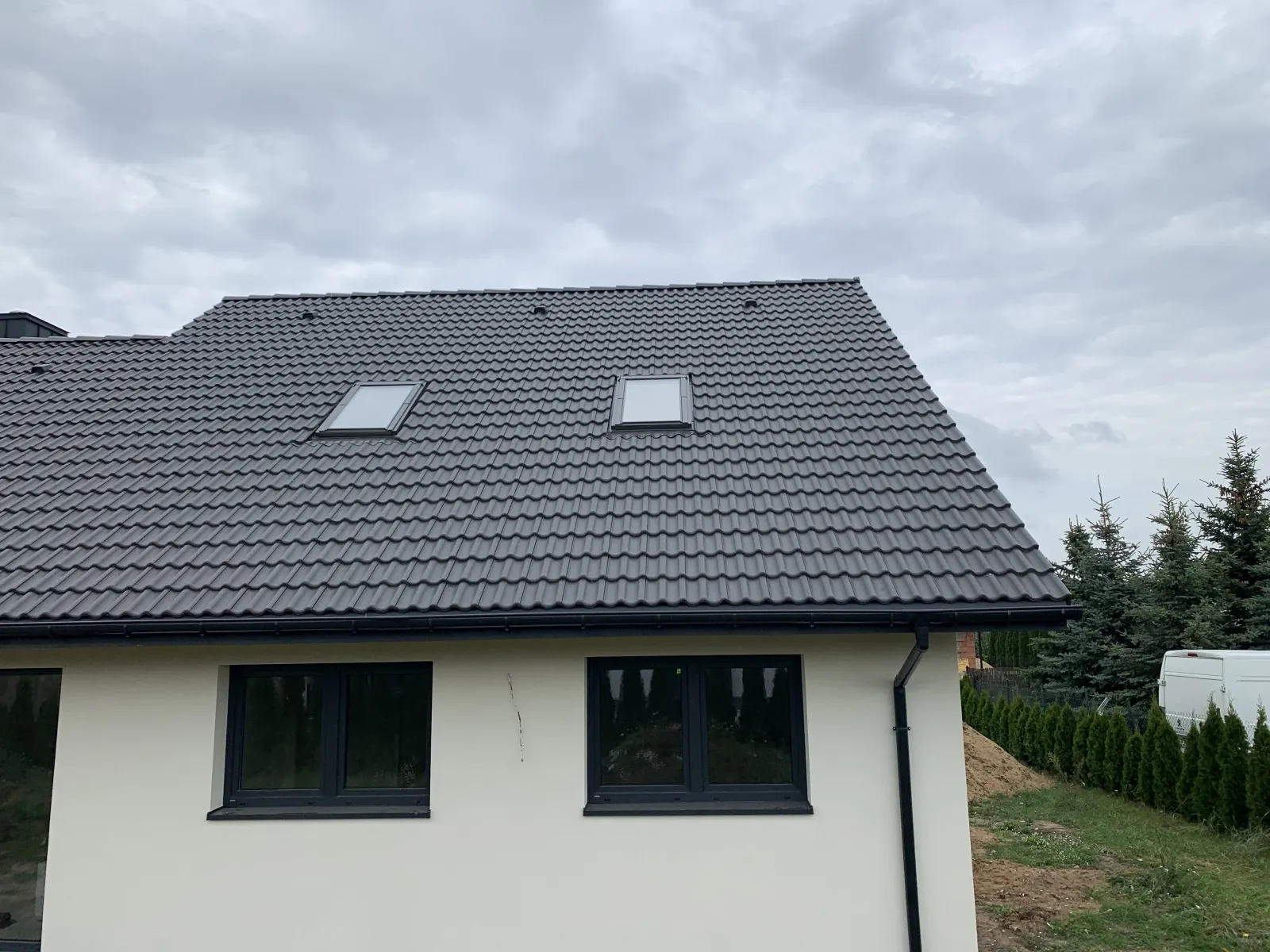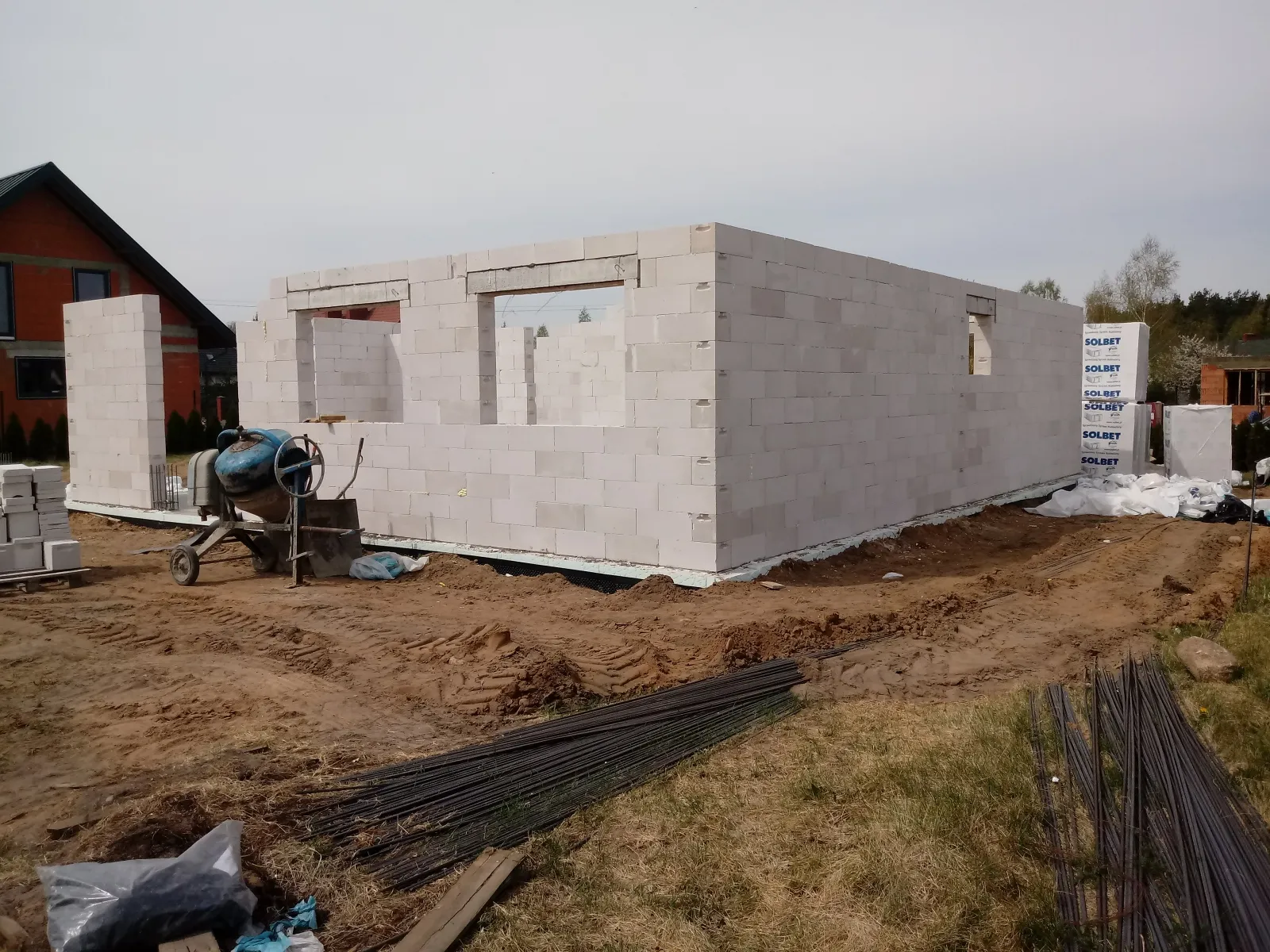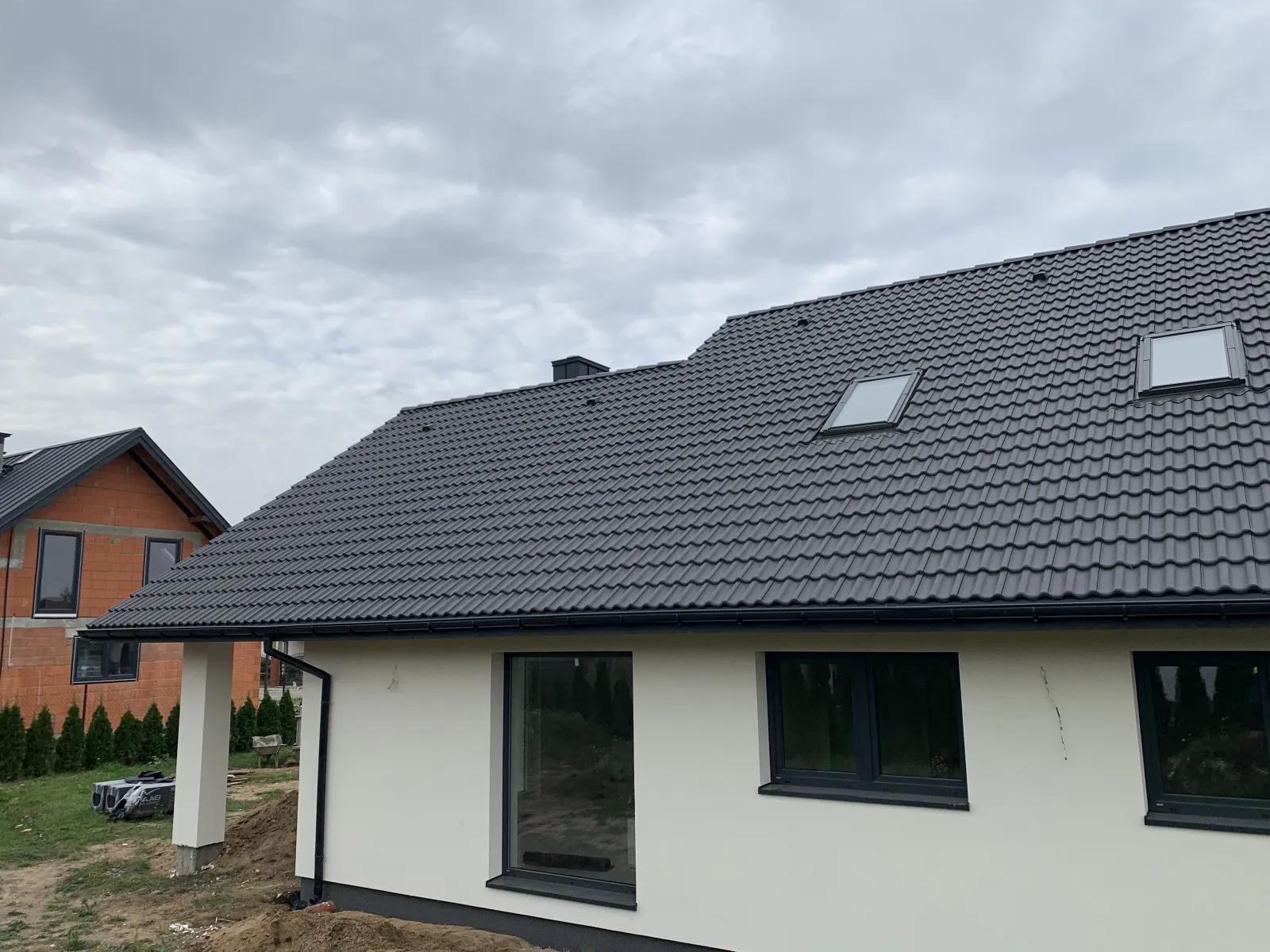 O casă cu o suprafață construită de aproape 136 m2 ridicată pe fundații tradiționale, adică benzi armate și ziduri de fundație. Pereții au fost realizați din beton celular. Planșeul peste parter este monolitic, din beton armat. Acoperișul clădirii este acoperit cu tablă cutată Pruszyński de culoare antracit.