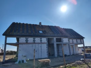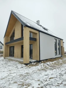 Casă cu suprafața utilă de 202 m2 ridicată pe fundații tradiționale, adică pe șanțuri armate și pe ziduri de fundație. Pereții de susținere și cei despărțitori au fost realizați din beton celular cu grosimea de 24 cm și 12 cm, respectiv. Structura acoperișului a fost realizată în mod tradițional din lemn conifer impregnat. Acoperișul clădirii este acoperit cu țiglă betonată plană.