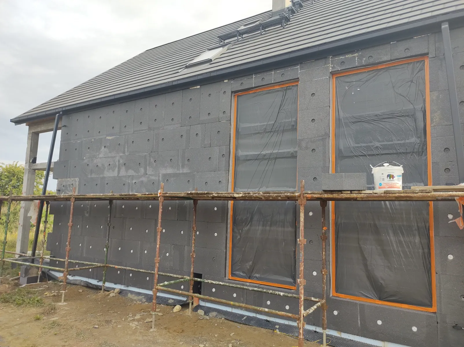 Izolația acoperișului clădirii a fost realizată cu spumă poliuretanică de 25 cm grosime, iar la pereții exteriori – cu polistiren grafitat de 20 cm grosime. Pentru finisarea fațadei clădirii a fost folosit tencuială siliconică de culoare deschisă. Fațada a fost finisată cu imitație de lemn.