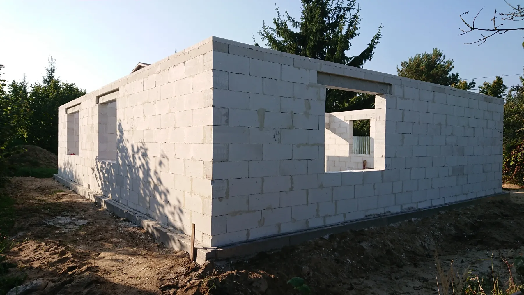 Casa cu o suprafață construită de 102 m2, situată pe o placă de fundație din beton armat izolată cu polistiren extrudat. Peretele exterior al parterului și etajului clădirii a fost construit din beton celular. Tavanul a fost realizat pe șantier, izolat cu polistiren. Structura acoperișului a fost realizată în mod tradițional din lemn de conifere impregnat conform proiectului. Exteriorul acoperișului a fost acoperit cu tablă cutată. A fost montată tâmplăria pentru ferestre și uși, precum și storuri încastrate, automate.