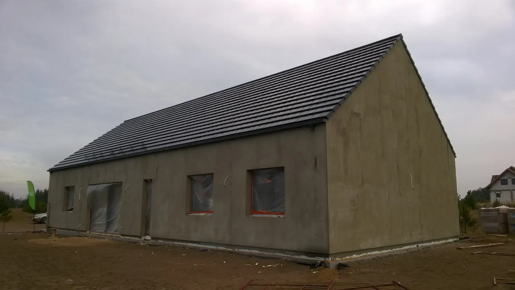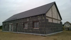 După efectuarea lucrărilor pregătitoare necesare, a fost realizată o placă de fundație armată cu grosimea de 20 cm, pe care a fost așezată o termoizolație de 15 cm grosime din polistiren extrudat XPS 300. Pereții de rezistență exteriori și interiori, cu grosimile de 24 cm respectiv, au fost realizați din beton celular. Învelitoarea acoperișului a fost executată din ferme prefabicate din lemn prelucrat pe patru fețe. Acoperișul clădirii a fost acoperit cu țiglă ceramică Braas Turmalin.