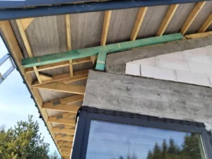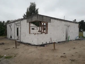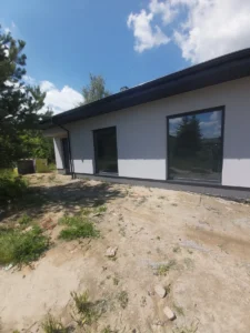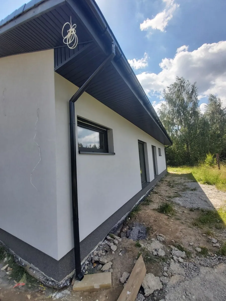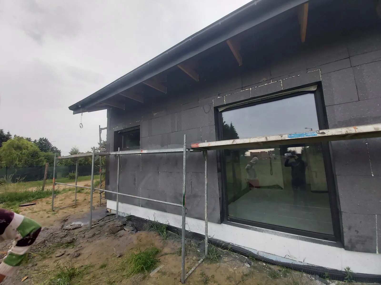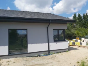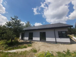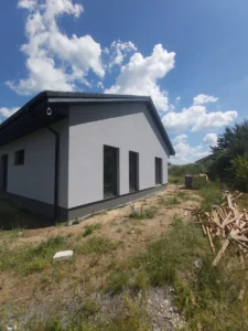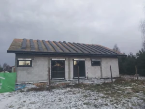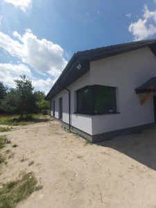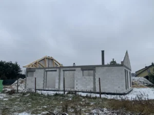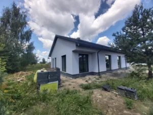 Casa cu o suprafață de 153 m2 construită pe fundații tradiționale, adică benzi armate și pereți de fundație izolați. Pereții portanți și cei despărțitori au fost realizați din beton celular cu o grosime corespunzătoare de 24 cm și 12 cm. Structura acoperișului a fost realizată din lemn prelucrat pe patru fețe, prefabricat și impregnate. Acoperișul clădirii este acoperit cu țiglă de ciment, pe care s-a realizat o trecere pentru instalarea ulterioară a sistemului fotovoltaic.