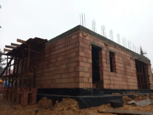 Casă cu o suprafață de 132 m2 ridicată pe fundații tradiționale, adică benzi armate și pereți de fundație. Pereții structurali și despartitori au fost realizați din blocuri ceramice cu o grosime de 25 cm respectiv 11,5 cm. Structura acoperișului a fost realizată într-un mod tradițional conform proiectului. Acoperișul clădirii este acoperit cu țiglă ceramică plană. Scările sunt monolitice din beton armat.