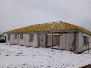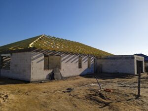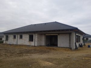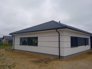 Casa cu o suprafață de 229 m2 construită pe fundații tradiționale, adică pe benzi armate și ziduri de fundație. Pereții de rezistență și despărțitori au fost realizați din beton celular cu grosimea de 24 cm și respectiv 12 cm. Plafonul este o structură tip Teriva cu grinzi dense. Structura acoperișului a fost realizată din ferme prefabricate. Acoperișul a fost acoperit cu țiglă beton ondulată de culoare grafit.