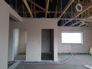 În clădire s-au realizat instalațiile electrice, tehnice, apă-canal, instalația completă de încălzire electrică împreună cu termostate și senzori, precum și instalația de recuperare a căldurii. Suplimentar a fost montat tub protecție pentru sistemul fotovoltaic.