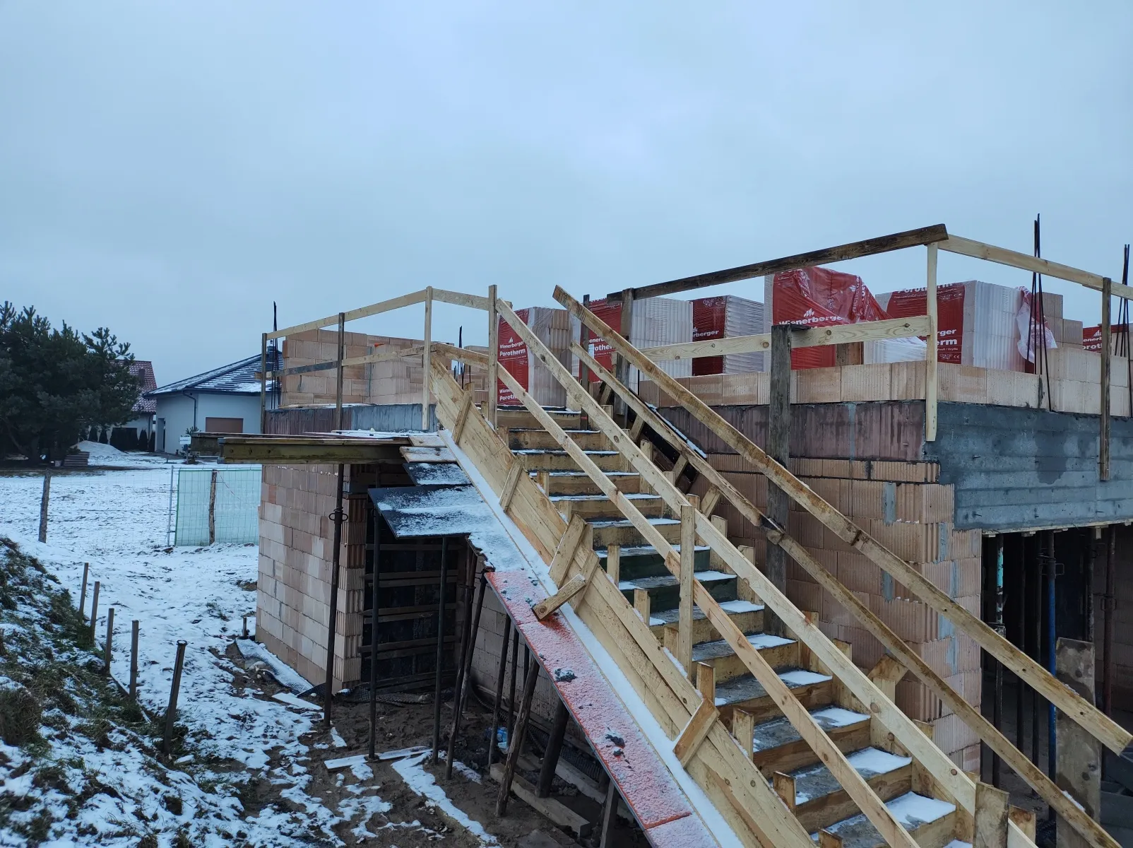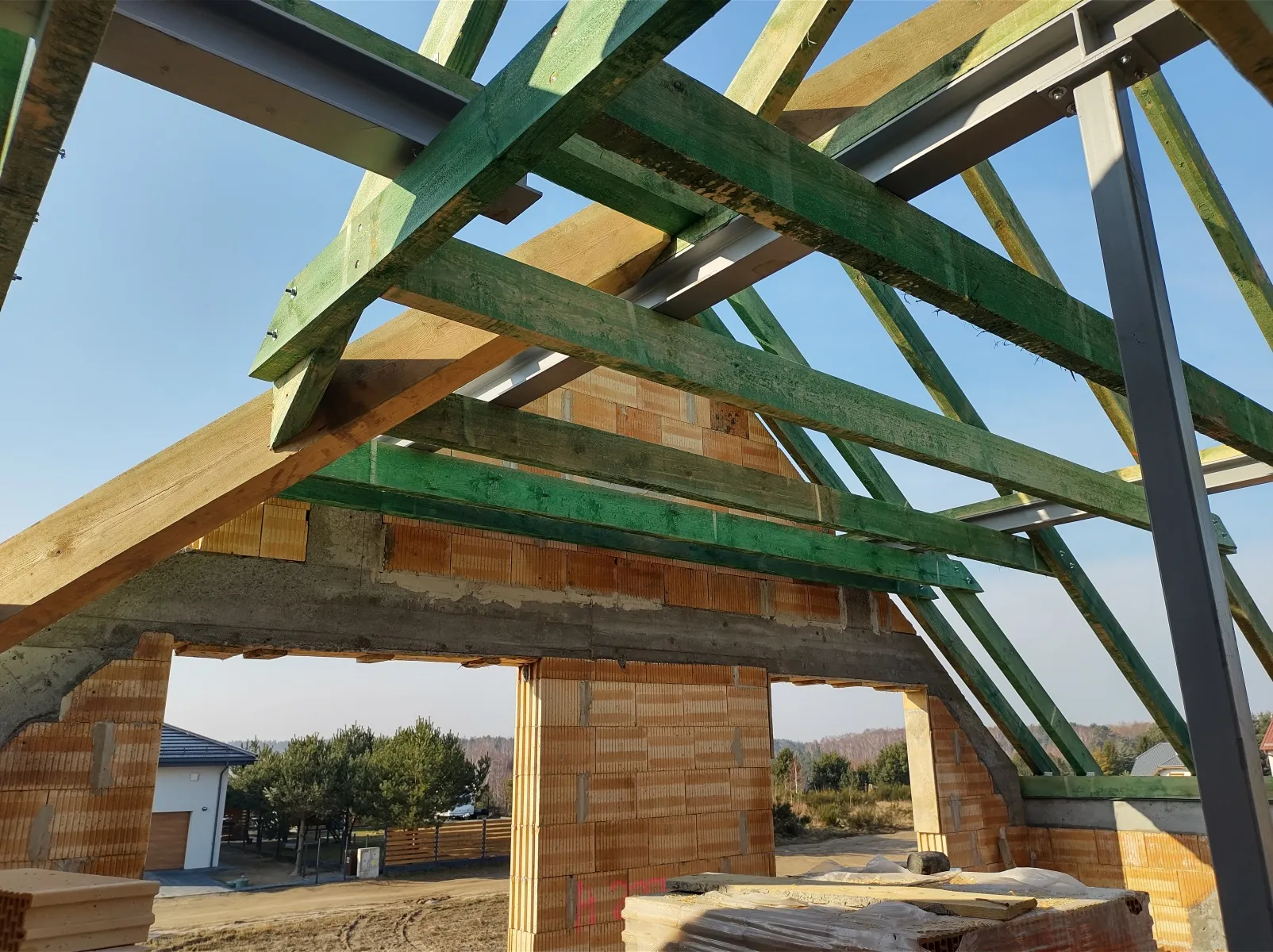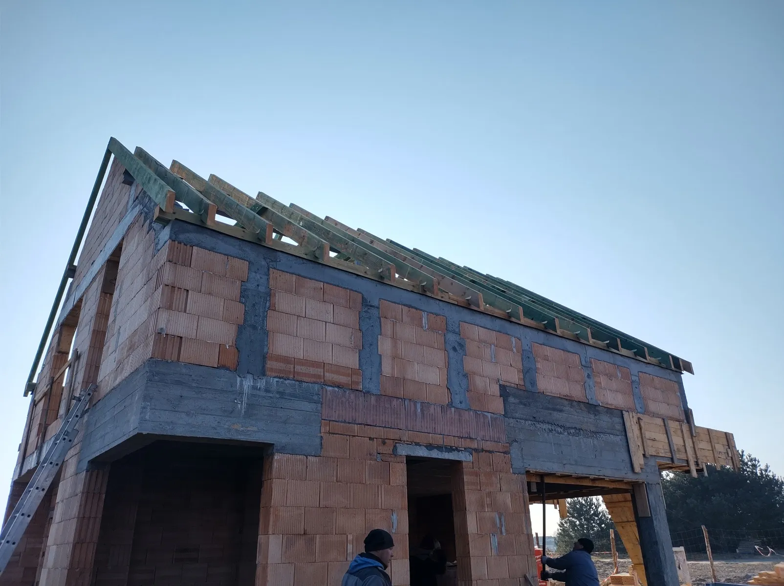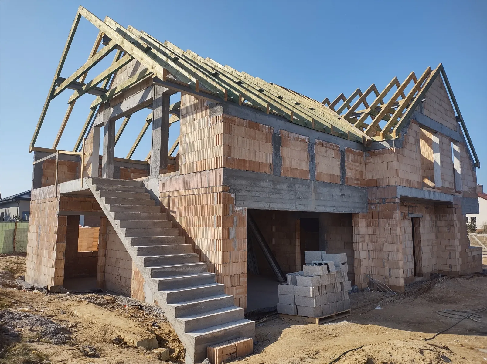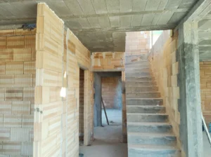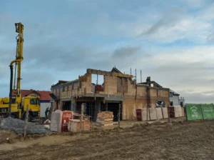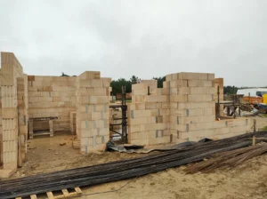 Casă cu o suprafață de puțin sub 185 m2 ridicată pe fundații tradiționale, adică pe benzi de armare și ziduri de fundație. Atât pereții despărțitori, cât și pereții de susținere au fost realizați din beton celular, cu grosimi de 12 cm, respectiv 24 cm. A fost utilizat plafonul tip panou Teriva Panel, iar scările din beton armat monolitic au fost executate conform proiectului. Coșul de fum a fost realizat din elemente din beton ușor celular, iar acoperișul clădirii a fost acoperit cu tablă cutată.