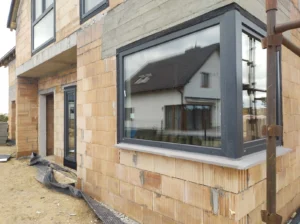În cadrul montajului termic al tâmplăriei ferestrelor a fost instalat sistemul de ferestre eficiente energetic Krispol, cu profile Bluevolution cu 6 camere și adâncimea de 82 mm. Ferestrele au fost dotate cu jaluzele exterioare ARZ Electro. Poarta de garaj segmentată, lată – presată, Krispol. De asemenea, a fost realizată o trecere către pod pentru instalarea ulterioară a instalației fotovoltaice.