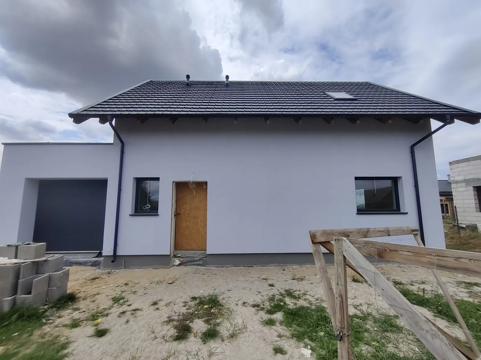 Casă cu o suprafață de aproape 110 m2, construită pe o placă de fundație armată cu termoizolație de 15 cm grosime din polistiren extrudat XPS 300. Atât zidurile portante, cât și pereții despărțitori au fost realizați din beton celular, zidărie pe adeziv cu strat subțire clasa M5. Acoperișul a fost realizat ca o construcție tradițională din lemn cu tavan Teriva Panel 20, acoperit cu tablă tip țiglă BUDMAT Murano. Pe acoperișul clădirii a fost realizată o trecere pentru panouri fotovoltaice. A fost realizată și învelitoarea terasei pe acoperiș plat.