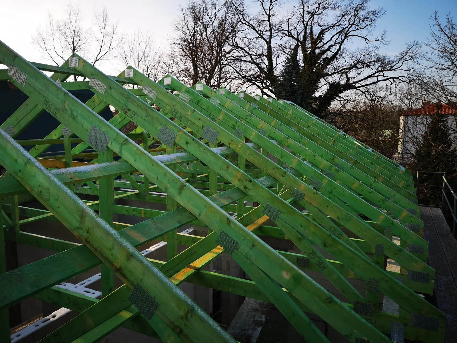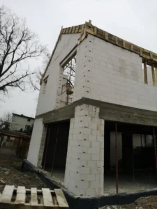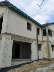 Casă cu o suprafață de 225 m2 ridicată pe fundații tradiționale, adică fundamente armate și pereți de fundație termoizolați. Pereții portanți și despărțitori au fost realizați din blocuri Silka. Tavanul – monolitic, din beton armat. Structura acoperișului a fost realizată dintr-o construcție prefabricată din lemn conform proiectului de construcție, din lemn clasa C24, șlefuit pe patru fețe și impregnat. Acoperișul clădirii a fost acoperit cu țiglă de ciment Brass Teviva.