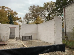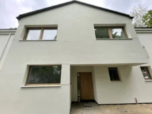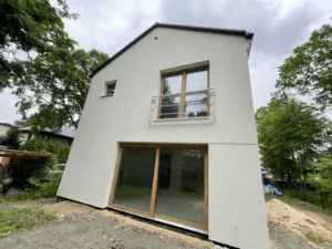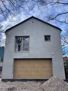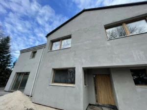 Izolarea pereților exteriori a fost realizată cu polistiren alb cu grosimea de 20 cm și lambda 0,04, iar un perete a fost izolat cu vată minerală, de asemenea cu grosimea de 20 cm. Pentru finisarea fațadei clădirii s-a folosit tencuială siliconică.