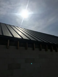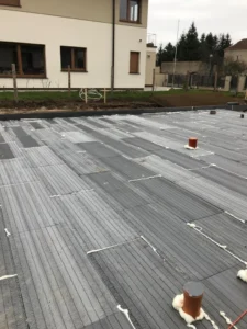 Structura acoperișului cu o suprafață de 183 m2 a fost realizată din elemente prefabricate. Acoperișul a fost acoperit cu tabla cutată Budmat Prime Click. La montajul termic al tâmplăriei pentru ferestre a fost utilizat sistemul de ferestre pasive KRISPOL – FEN 85, profile cu 6 camere și adâncime de 85 mm, precum și pervazuri termoizolante din XPS.