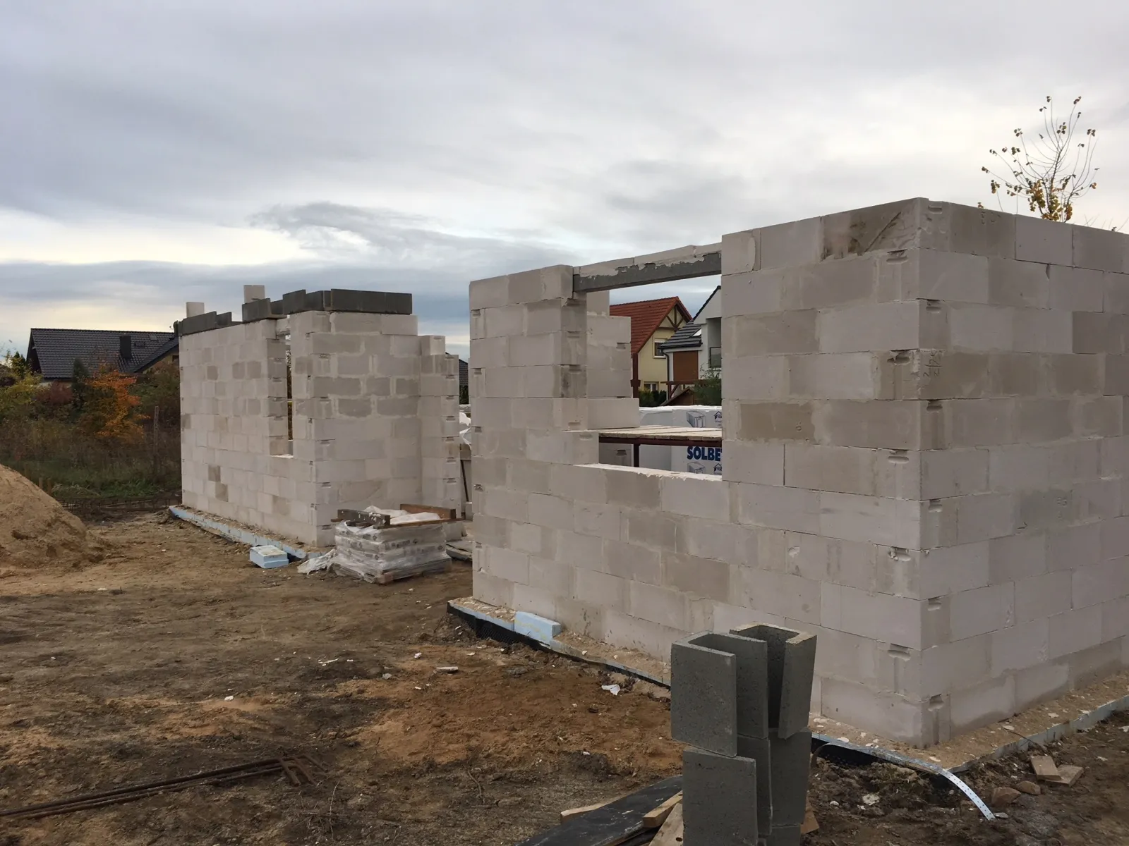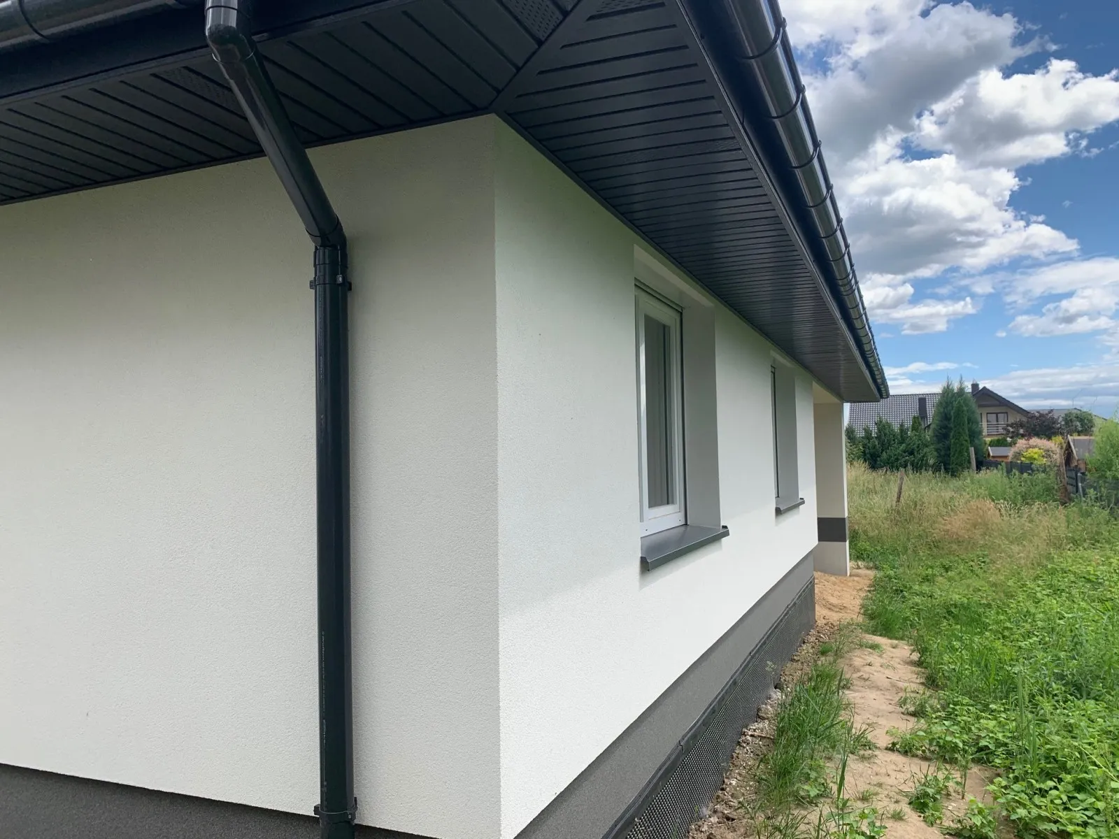 Casă cu o suprafață de 115 m2 construită pe fundații tradiționale, adică benzi armate și ziduri de fundație. Zidurile au fost realizate din beton celular. Structura acoperișului casei și garajului a fost realizată din ferme prefabricate, din lemn șlefuit pe patru fețe de clasa C24, impregnat. Acoperișul clădirii a fost acoperit cu țiglă beton Braas Celtică lumio.