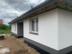 Izolarea acoperișului clădirii a fost realizată cu spumă PUR cu o grosime de 22 cm, iar protejarea pereților exteriori – cu polistiren grafitat cu grosimea de 20 cm. Pentru finisarea fațadei clădirii a fost folosit tencuială siliconică Kosbud, de culoare albă.