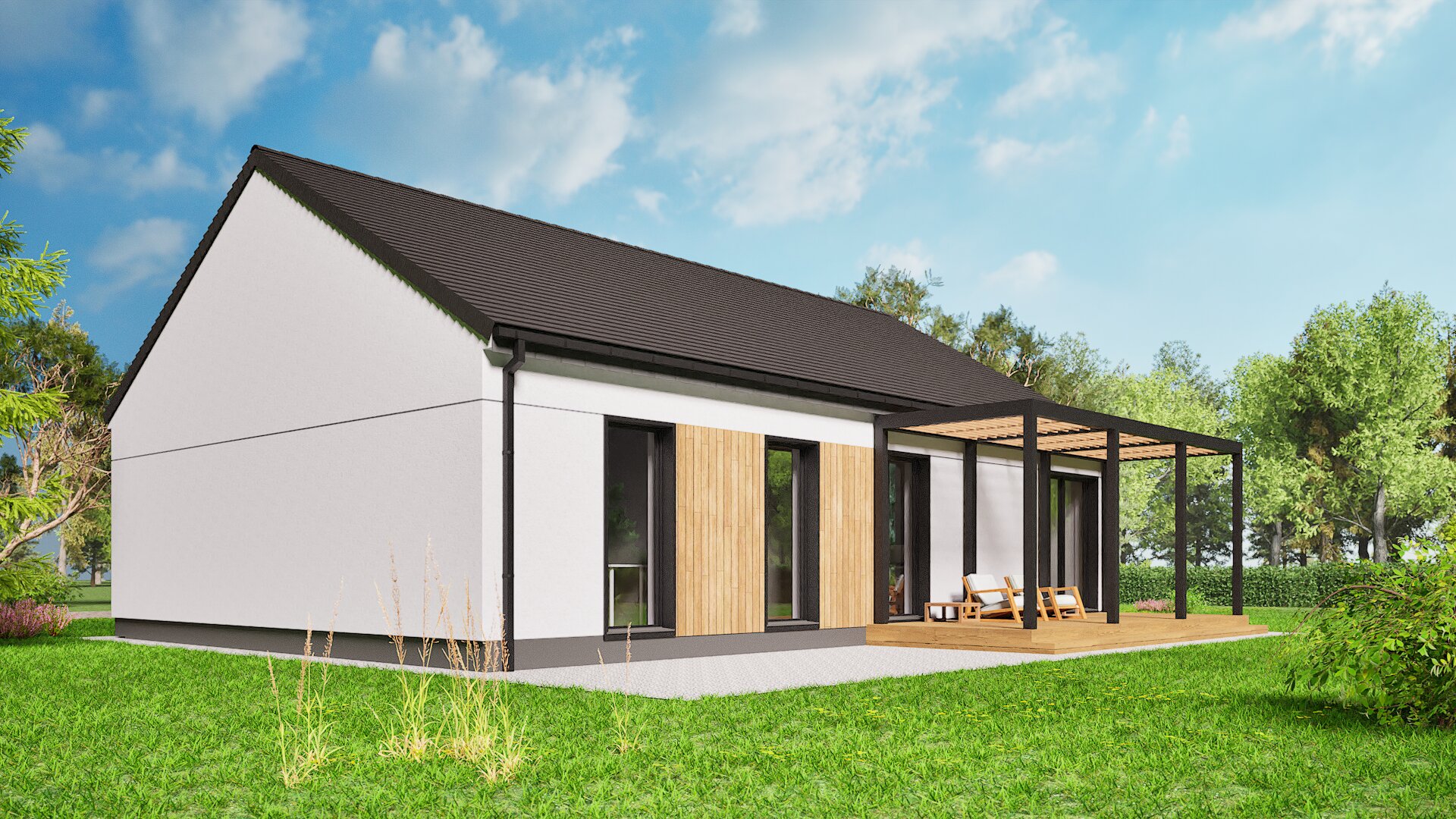 Casa a fost proiectată având în vedere confortul utilizatorilor. Planul funcțional parter asigură comoditate atât pentru familiile cu copii, cât și pentru persoanele în vârstă. Partea centrală a casei este un living spațios, combinat cu zona de luat masa și bucătăria deschisă. Zona privată include dormitoare confortabile cu acces la baie. Un avantaj suplimentar este terasa acoperită, care este perfectă pentru relaxare în aer liber.
